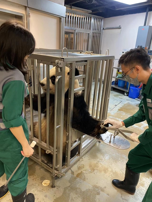 Com os cuidados prestados pela equipa dos seus criadores, todos os membros da família Feliz estão de boa saúde. “Kai Kai” tem 15 anos e pesa 117 quilos, “Xin Xin”, de 16 anos, pesa 127 quilos, enquanto “Jian Jian” e “Kang Kang”, de sete anos, pesam 130 e 110 kg, respectivamente. No que diz respeito à alimentação artificial, a esperança de vida dos pandas gigantes é geralmente entre os 20 e os 30 anos. De acordo com a idade dos pandas gigantes, a idade adulta é entre os cinco e os 20 anos, enquanto a idade superior a 20 anos é considerada idade avançada. Perante possíveis mudanças no estado físico dos pandas gigantes à medida que envelhecem, nos cuidados de rotina, a equipa de criadores, para além de observar o estado mental, o apetite e a qualidade das fezes dos pandas gigantes, adopta toques e exames médicos através de medição da pressão arterial dos pandas gigantes, recolha de sangue para análise, exame de raio X, etc., para monitorizar constantemente o estado de saúde dos pandas gigantes, a fim de tomar, em tempo oportuno, as medidas de tratamento clínico necessárias.