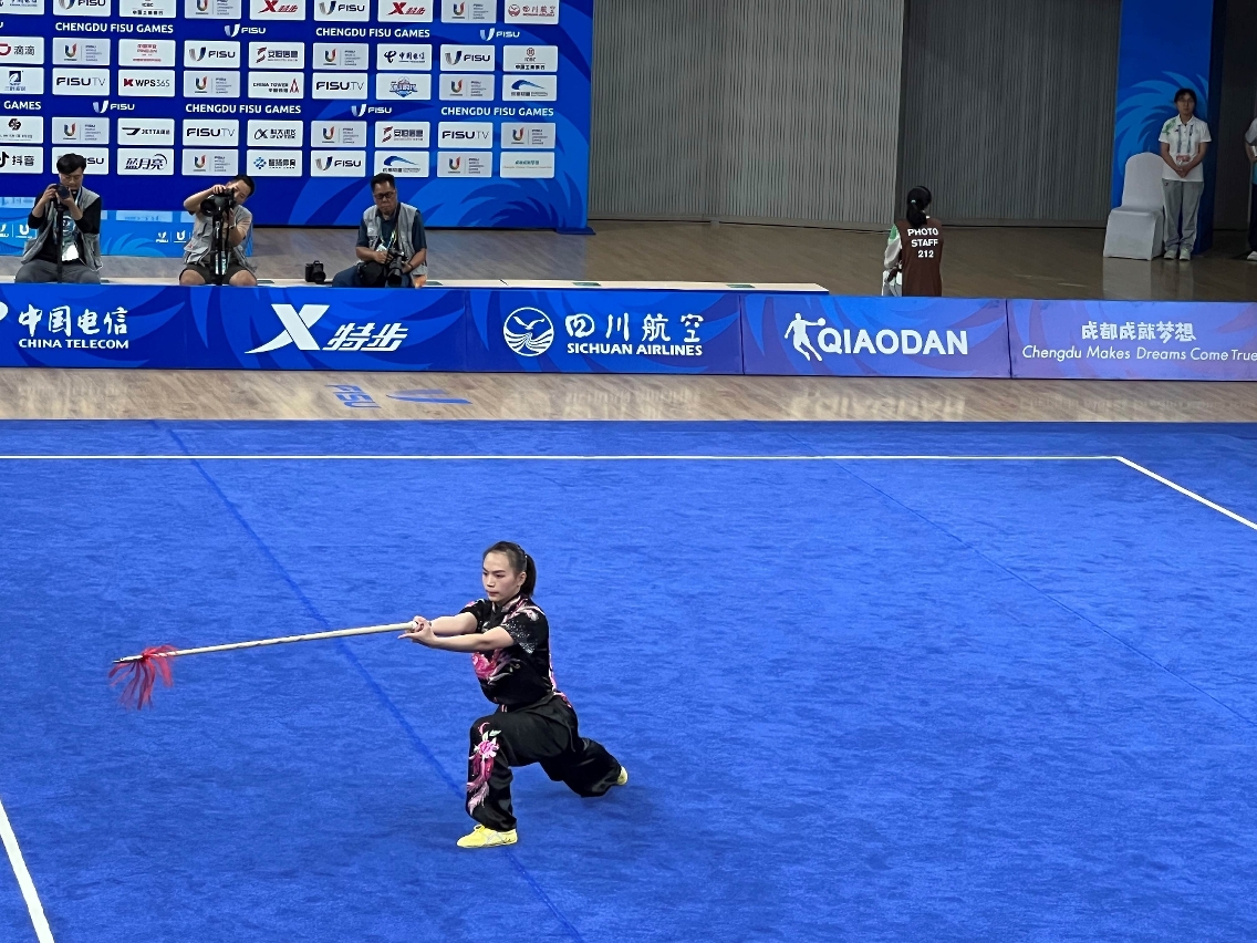 A delegação desportiva de Macau, China continuam a disputar, hoje (dia 30), as modalidades da 31.a edição dos Jogos Mundiais Universitários, que se encontram a decorrer em Chengdu, província de Sichuan, terminando com alegria por ter conquistado mais 5 medalhas para Macau, a saber: Wong Sam In conquistou a primeira medalha de ouro para Macau nesta edição, na modalidade feminina de arte marcial “nanquan”, com resultado de 9.643 pontos; Wong Weng Ian conquistou 2 medalhas de prata na modalidade feminina de arte marcial “jianshu” e “qiangshu”, com resultados de 9.656 pontos e de 9.593 pontos, respectivamente; Cheung Ioi Chit conquistou 1 medalha de prata na modalidade masculina de arte marcial “nangun”, com resultado de 9.66 pontos; e Lei Cheok Ieong conquistou 1 medalha de bronze na modalidade masculina de arte marcial “gunshu”, ao terminar com resultado de 9.6 pontos. Até à data, a delegação desportiva de Macau conquistou 1 medalha de ouro, 3 de prata e 2 de bronze, resultado este se considera muito positivo.