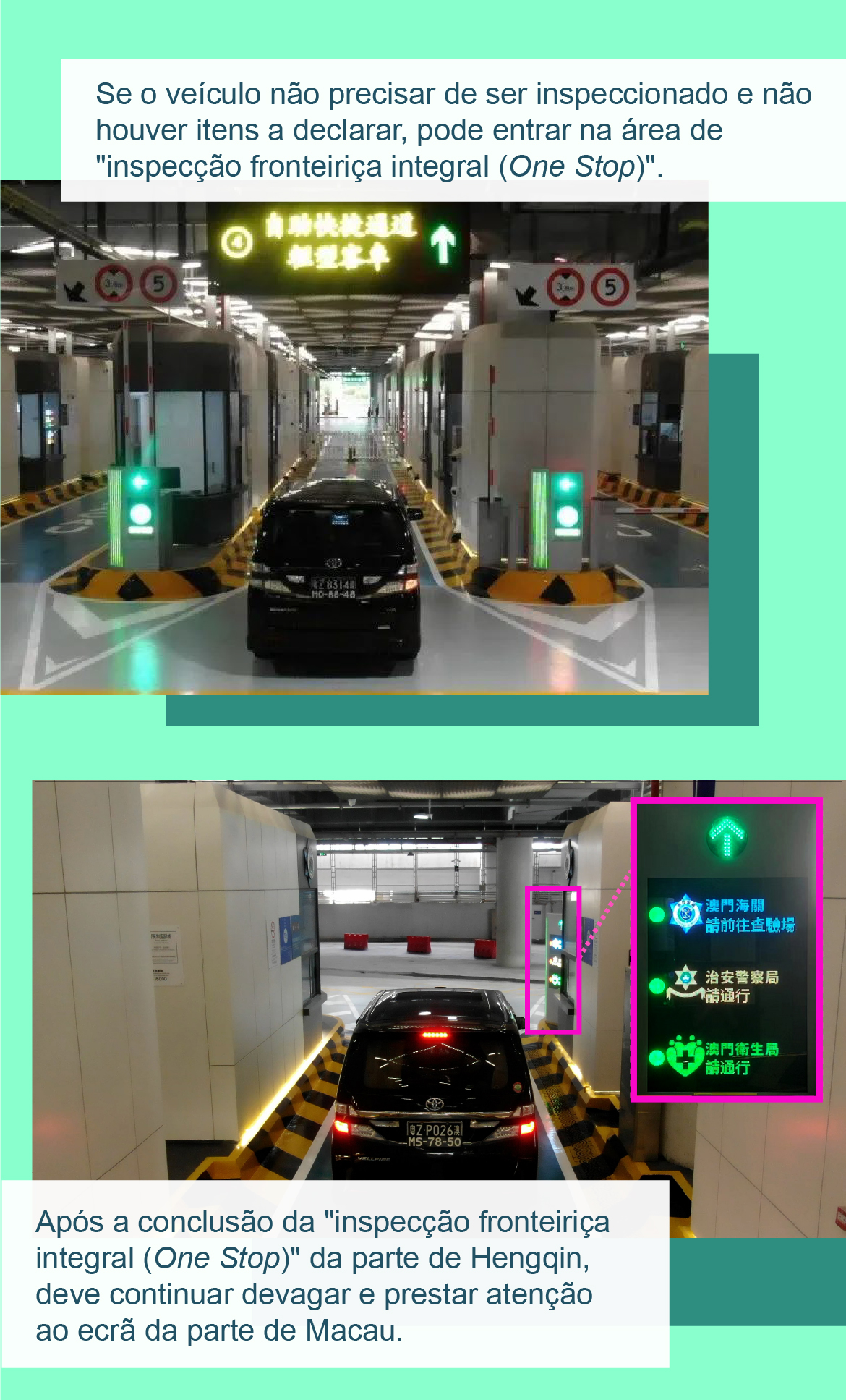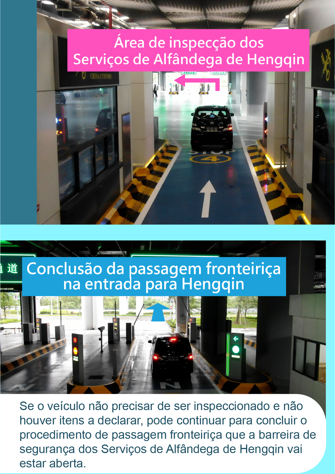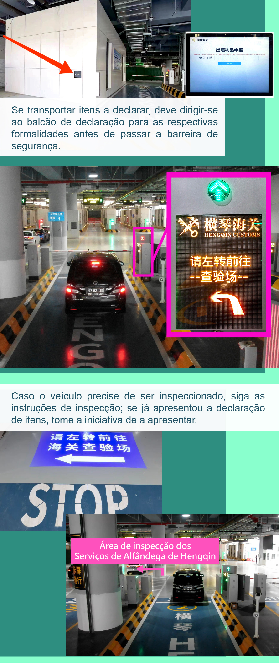 • 【Inspecção aduaneira】 Corredores de "inspecção fronteiriça integral (One Stop)" do Posto Fronteiriço Hengqin