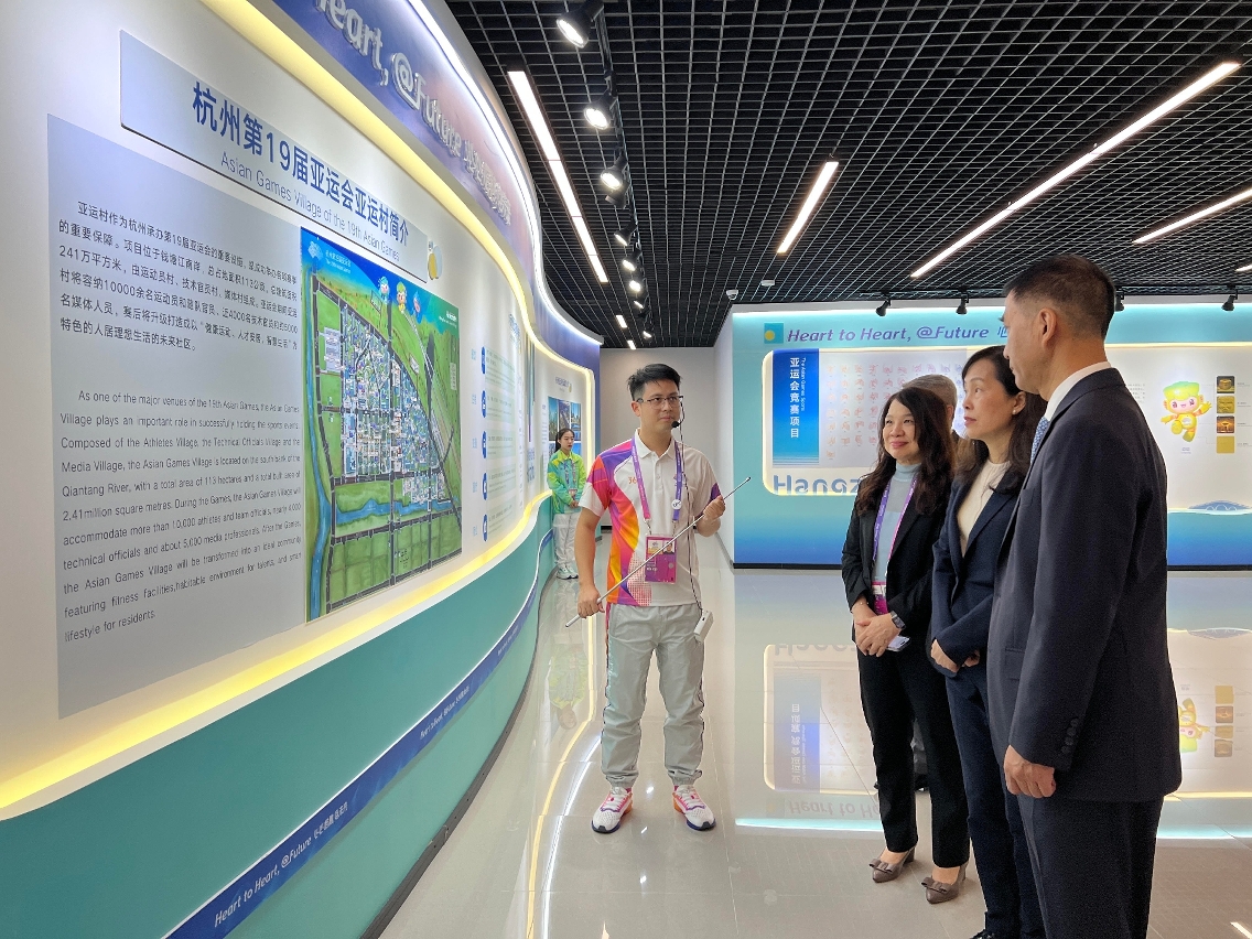 A cerimónia de boas-vindas à delegação desportiva de Macau, China realizou-se esta manhã na Praça da Bandeira da Vila dos Atletas dos Jogos Asiáticos. A cerimónia foi aberta com o discurso de boas-vindas do Vice-Presidente do Comité Permanente da Assembleia Popular Nacional da cidade Hangzhou e Diretor Executivo do Centro de Gestão da Vila dos Jogos Asiáticos de Hangzhou, Lu Chunqiang, seguido das cerimónias do hino nacional e de içar da bandeira dos países e regiões participantes, durante a qual a bandeira regional da RAEM foi içada ao som do hino nacional da República Popular da China, assinalando a entrada da delegação desportiva de Macau, China na Vila dos Atletas. Em seguida, trocaram lembranças o Diretor Executivo, Lu Chunqiang e o Chefe da delegação desportiva de Macau, China, Pun Weng Kun.