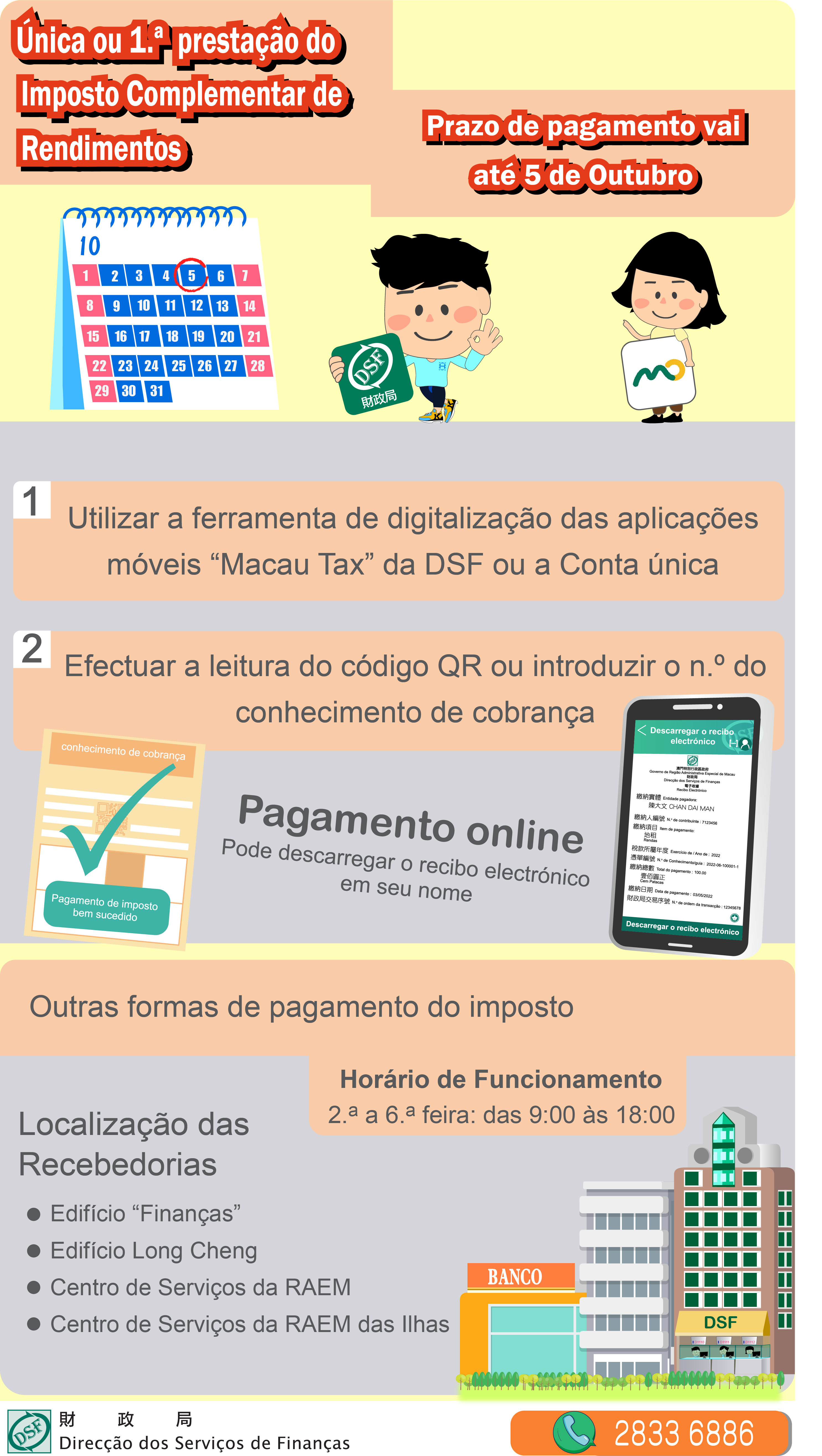 Para quaisquer dúvidas, ligue para a Linha Aberta para informações fiscais através do n.º 2833 6886.