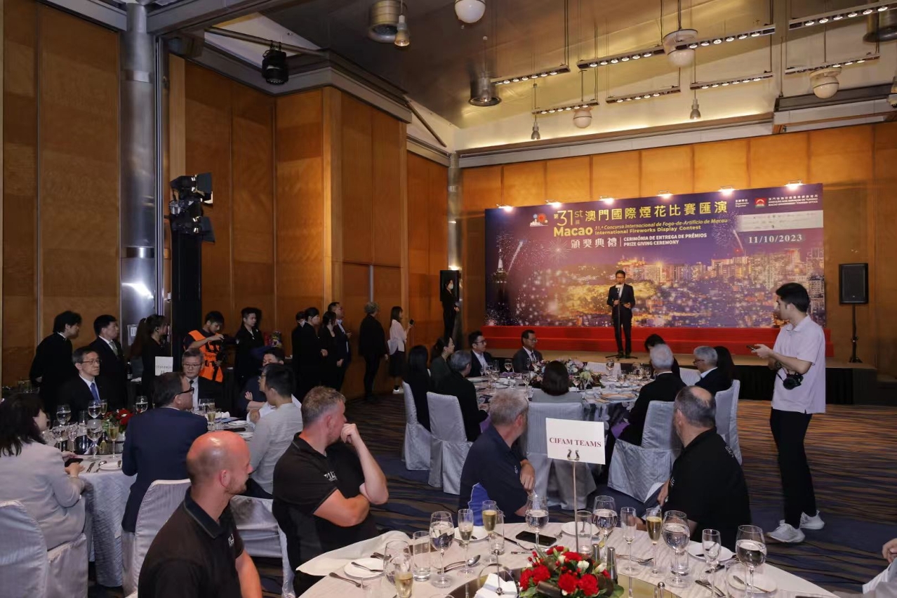 A cerimónia de entrega de prémios teve lugar logo após os dois últimos espectáculos. No seu discurso na ocasião, o director substituto da DST, Cheng Wai Tong, referiu que, após três anos de espera, e mediante os esforços conjuntos de várias partes, o CIFAM foi retomado este ano com sucesso. Dez companhias pirotécnicas oriundas da Austrália, Suíça, Áustria, Rússia, Filipinas, Japão, China, Portugal, Inglaterra e Alemanha trouxeram cinco noites de grande exuberância visual e sonora para os residentes e visitantes. Apesar das condições meteorológicas terem afectado o programa do concurso, este acabou por ser concluído com êxito, graças à união de esforços de todos. Espera-se que, no futuro, o CIFAM continue a trazer a todos mais momentos coloridos e de emoção, mostrando o encanto da diversidade do “turismo + eventos” de Macau e contribuindo para a promoção da economia nocturna.