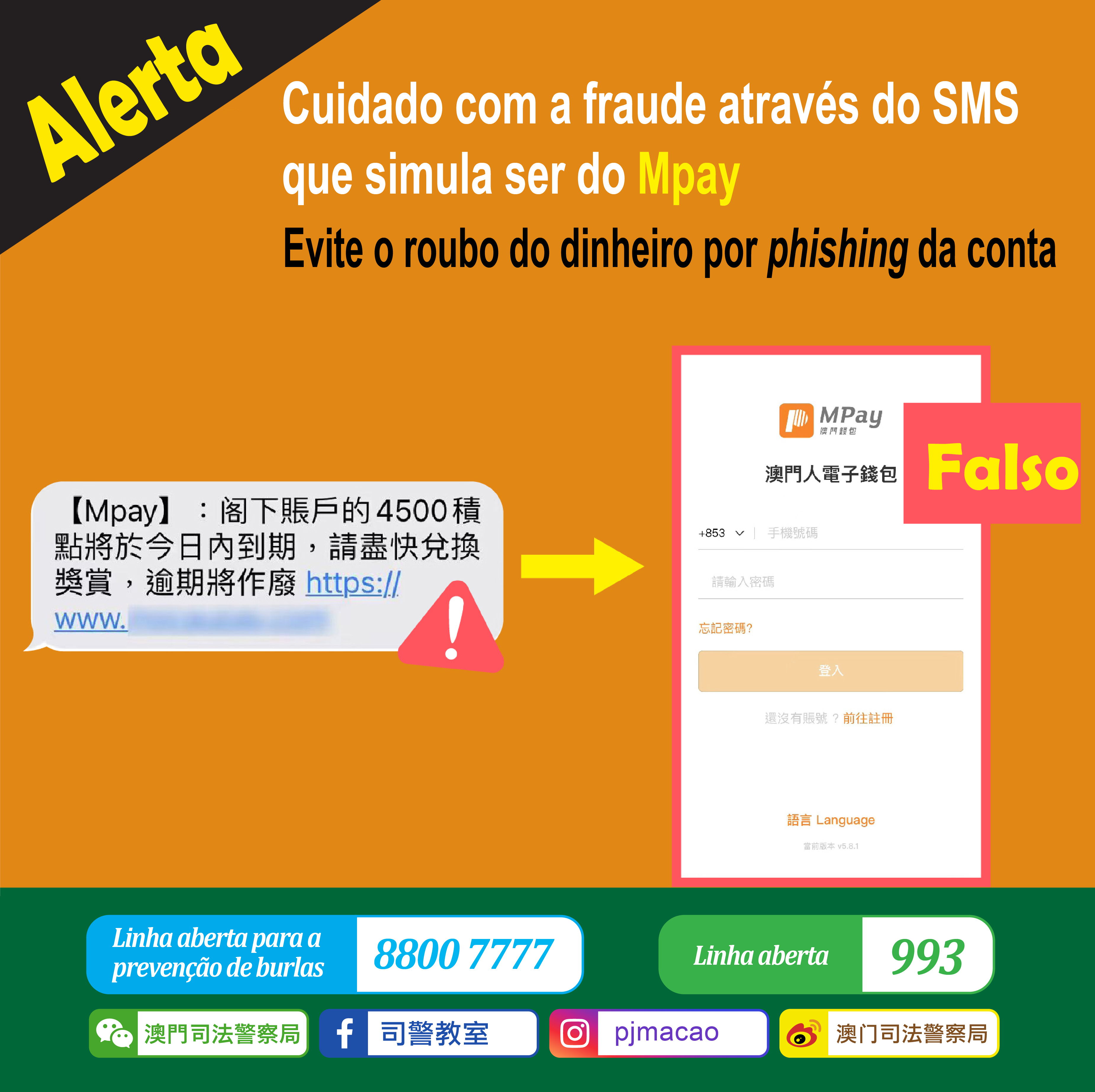 Hoje foram denunciados à PJ vários casos de burla através do SMS de phishing. Segundo as denúncias, as vítimas receberam um SMS que simulavam ser do MPay, e diziam que os pontos de recompensa estavam em vias de expirar pedindo para que procedecem ao seu resgate rapidamente. A esse aviso seguia-se o pedido para clicarem num site para se escolher o produto de recompensa. Entretanto, ao clicar este link, a vítima tinha de introduzir a sua conta do MPay, senha e os códigos de verificação e de transacção.