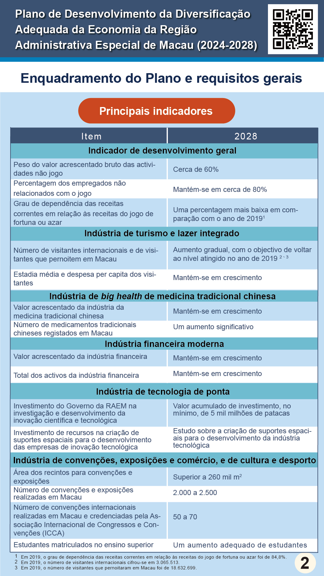 (Infografia) Divulgação oficial do Plano de desenvolvimento da diversificação adequada da economia da Região Administrativa Especial de Macau (2024 – 2028)