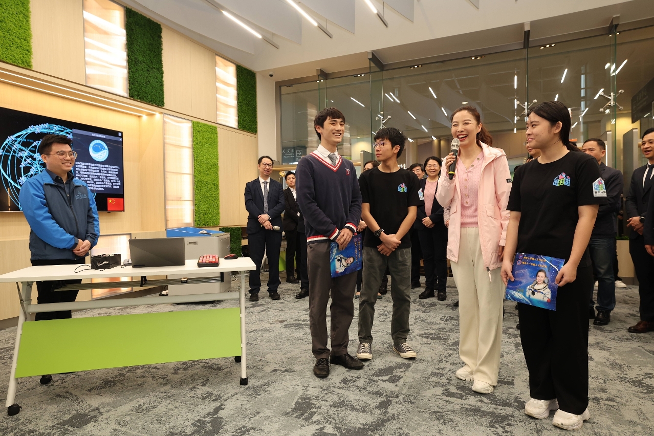 Um dos membros da Delegação, Wang Yaping, astronauta da nave espacial tripulada Shenzhou-13, conduziu, em 9 de Dezembro de 2021, a lição dada no espaço no âmbito da “Aula Tiangong”, tendo sido Macau um dos locais de realização dessa actividade nacional. Neste âmbito, a DSEDJ organizou cerca de 170 alunos do ensino primário e secundário para participarem, em conjunto, com alunos de outras regiões da nação, na ligação, via satélite, em tempo real, com a Estação Espacial Tiangong, no Centro de Ciência de Macau. O representante dos alunos de Macau, Huang King Pui, aluno da Escola Tong Nam, que, naquela ocasião, participou no “Diálogo entre o Céu e a Terra” com a astronauta Wang Yaping, escreveu hoje, em conjunto com dois formandos da iniciativa “Ciência e Tecnologia da Vila da Juventude” de Macau, uma curta mensagem: “Bem-vinda a Delegação Aeroespacial da China na visita ao Centro de Ciência de Macau”, em tom de cumprimento à Delegação, que foi transmitida através do sistema de satélites Beidou. Durante a interacção e intercâmbio com os estudantes, a astronauta Wang Yaping manifestou o desejo de que o aluno Huang seja admitido na universidade que pretende e encorajou os outros alunos jovens de Macau a “terem grandes ambições e coragem de sonhar, perseguirem os seus sonhos e serem diligentes na sua realização e, por fim, conquistarem a sua estrela mais brilhante”.