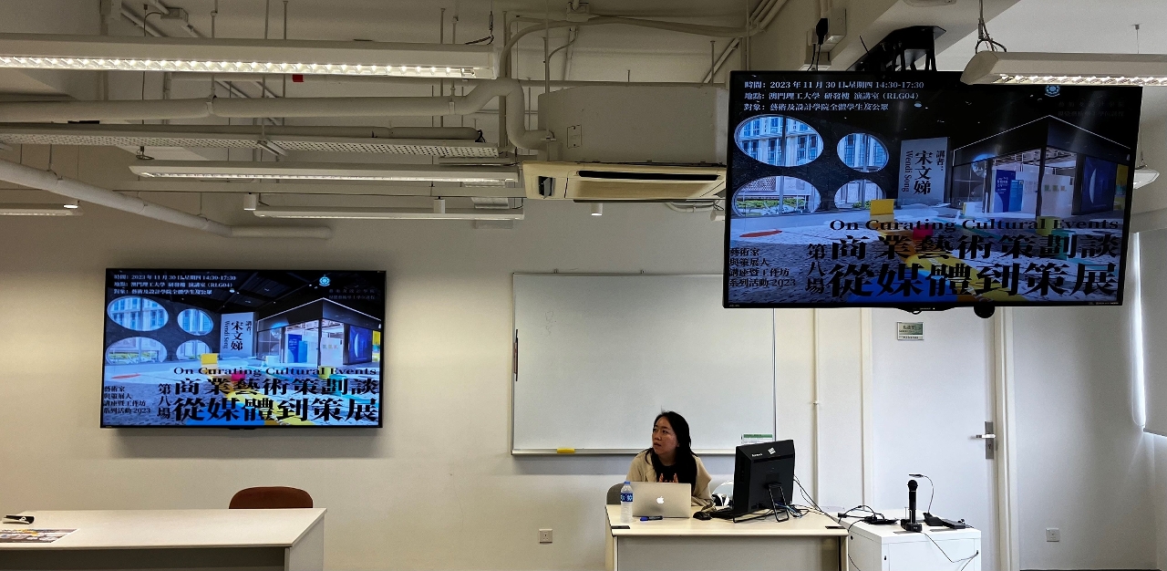 A curadora Song Wendi, que participou na “Arte Macau: Bienal Internacional de Arte de Macau 2023”, proferiu a palestra “Sobre a Curadoria de Eventos Culturais”, partilhando a vivência da transformação da sua carreira nos meios de comunicação social como curadora de galerias comerciais, bem como a sua experiência de participação na “Arte Macau”.