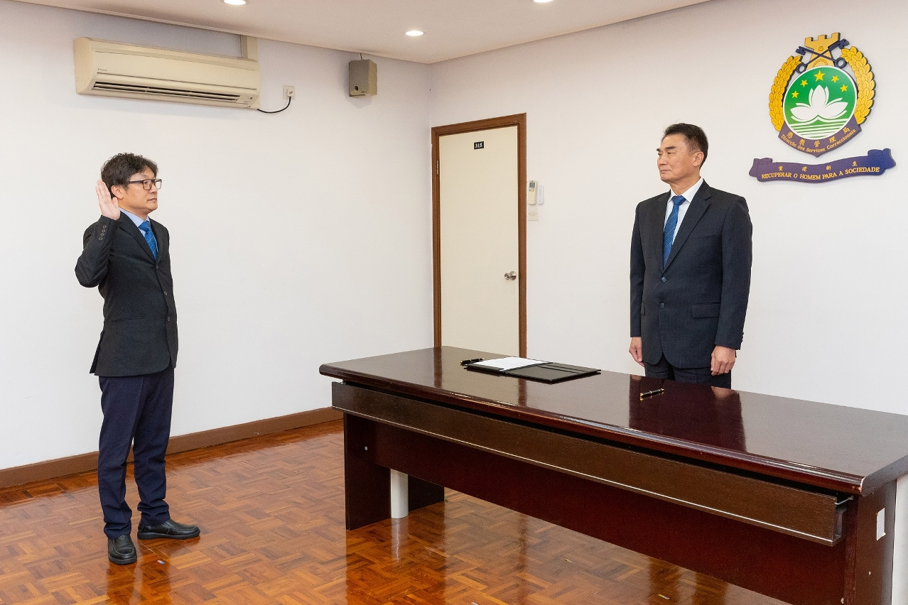 A Direcção dos Serviços Correccionais (DSC) realizou, no dia 3 de Janeiro de 2024, a cerimónia de tomada de posse do novo chefe, supervisionada a prestação de compromisso de honra pelo Director, Cheng Fong Meng e, com a presença do Subdirector Chio Song Un e demais chefias, o Chefe de Divisão de Informática e Comunicação, Fan Sao Wai prestou o compromisso de honra para a tomada de posse.
