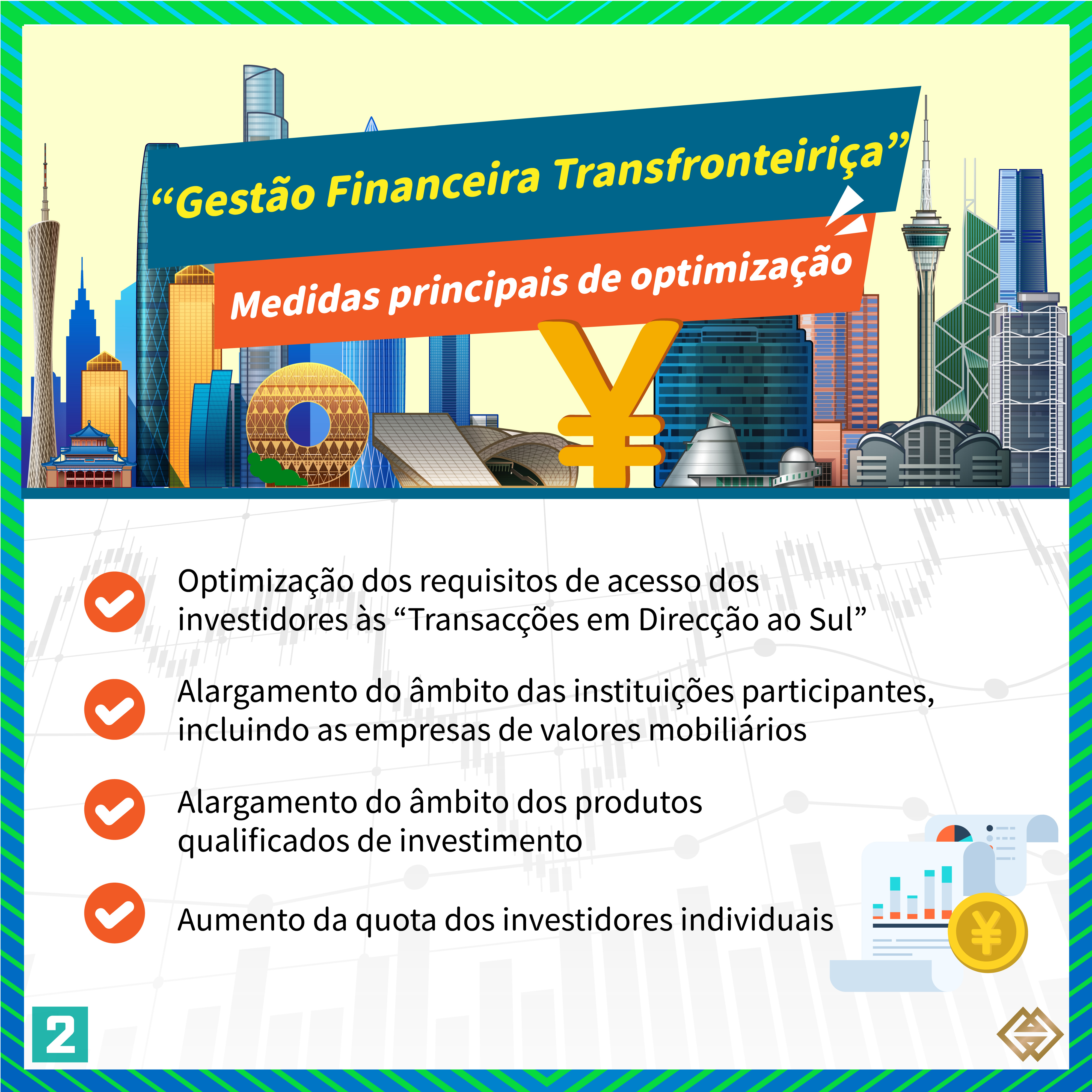 O objectivo de implementar o plano estratégico nacional para a construção da Grande Baía Guangdong-Hong Kong-Macau (Grande Baía) permite aprofundar a interligação e a interconexão dos mercados financeiros de Guangdong, Hong Kong e Macau, a AMCM anunciou, no dia 28 de Setembro de 2023, após consulta conjunta com as respectivas autoridades financeiras do Interior da China e de Hong Kong, que vai reforçar a optimização das actividades do Projecto-piloto denominado por “Gestão Financeira Transfronteiriça” estabelecido na Grande Baía Guangdong-Hong Kong-Macau, a qual passa, principalmente, pela optimização dos requisitos de acesso dos investidores às “Transacções em Direcção ao Sul”, pelo alargamento do âmbito das instituições participantes e dos produtos de gestão financeira qualificados, bem como pelo aumento da quota dos investidores individuais. Seguidamente, as autoridades competentes de supervisão financeira do Interior da China, Hong Kong e Macau vão proceder à revisão da regulamentação e das directivas sobre o desenvolvimento destas actividades.