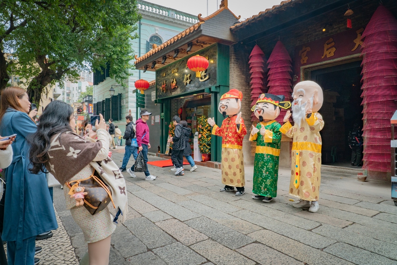 Para enriquecer a diversidade da oferta na zona pedonal temporária, parte das exibições itinerantes das “Actividades do Ano Novo Chinês 2024” foram estendidas à vila da Taipa, com a mascote do turismo de Macau “Mak Mak”, os três Deuses da Felicidade, Longevidade e Prosperidade a irem ao local para tirar fotografias com os participantes e divulgar a imagem turística de Macau.