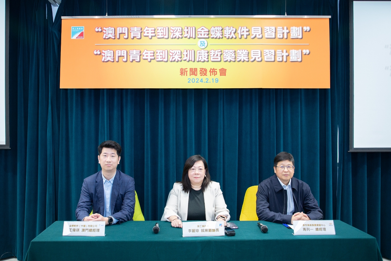 Em articulação com a promoção activa pelo Governo da Região Administrativa Especial de Macau (RAEM) da estratégia de desenvolvimento da diversificação adequada “1+4”, nomeadamente o aperfeiçoamento da estrutura industrial para a aceleração da formação de quadros qualificados para as indústrias, a Direcção dos Serviços para os Assuntos Laborais (DSAL) entra em cooperação com a Kingdee Software (China) Co., Ltd. (doravante designada por Kingdee Software) e a China Medical System Holdings Ltd. (doravante designada por CMS) para lançar respectivamente, no dia 19 de Fevereiro, o “Plano de estágio para jovens de Macau na Kingdee Software em Shenzhen” e o “Plano de estágio para jovens de Macau na China Medical System em Shenzhen”, que visam a aprendizagem pelos jovens de Macau de experiências e conhecimentos tecnológicos avançados de empresas do Interior da China para a aplicação em contextos de trabalho futuros, alargando as suas oportunidades de emprego. A recepção de candidaturas online aos planos estará aberta entre os dias 19 de Fevereiro e 8 de Março.