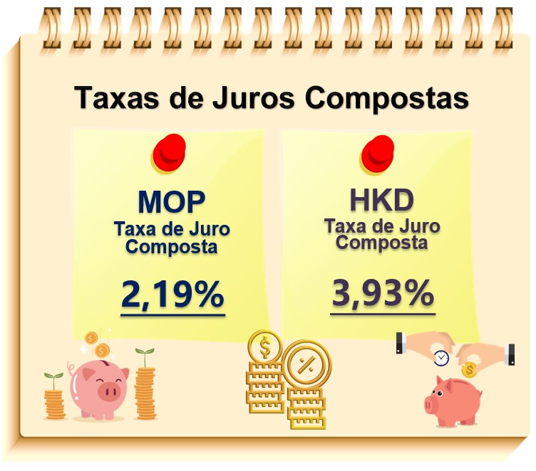 No final de 2023, as taxas de juro compostas da Pataca e do Dólar de Hong Kong registadas no final de Setembro de 2023, aumentaram de 1,99% e 3,74% para os níveis de 2,19% e 3,93%, respectivamente. Os correspondentes aumentos cifraram-se em 21 pontos de base e 19 pontos de base, respectivamente.