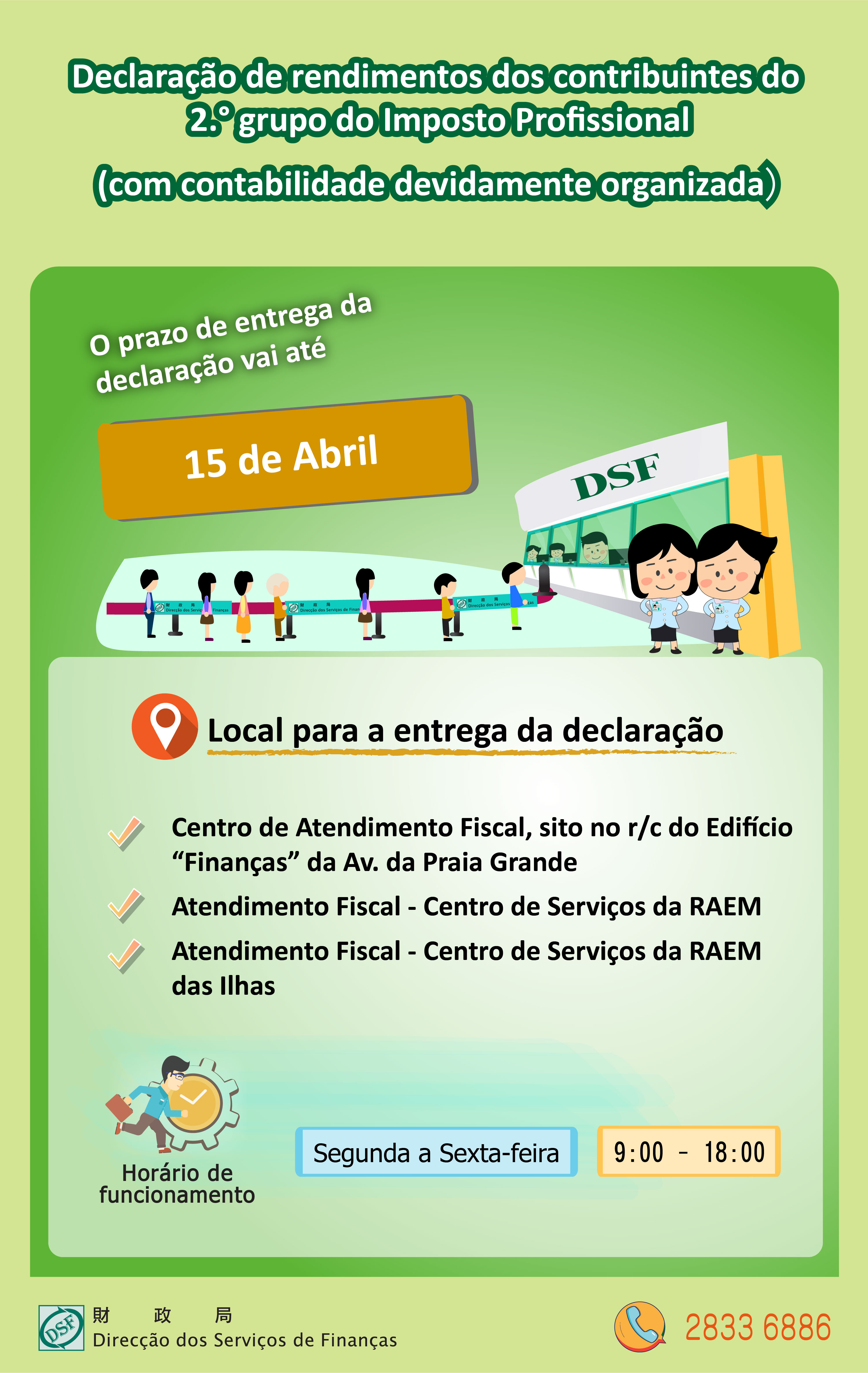 Para mais esclarecimentos, ligue para a Linha Aberta para Informações Fiscais através do n.º 2833 6886.