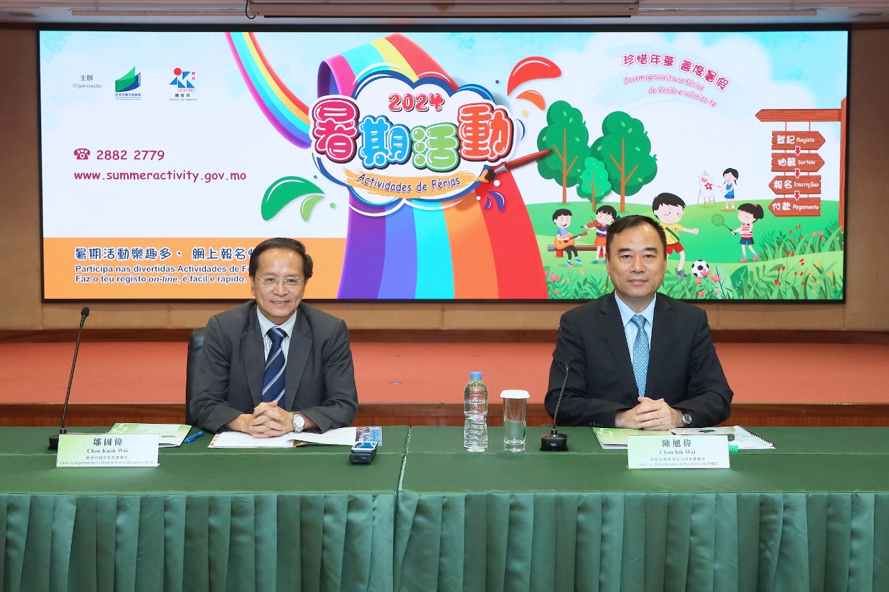 As Actividades de Férias 2024 dispõem, aproximadamente, de 540 actividades, mais de 2.000 turmas e um total mais de 45.600 vagas para crianças e jovens de Macau, sendo o n.º de vagas semelhante ao do ano transacto. À DSEDJ, cabe a organização das actividades culturais e recreativas, das quais fazem parte, cerca de 430 actividades e 1.300 turmas, disponibilizando um total cerca de 24.300 vagas. Por sua vez, as actividades desportivas são organizadas pelo ID, que oferece, cerca de 100 actividades, mais de 700 turmas, com um total cerca de 21.200 vagas.