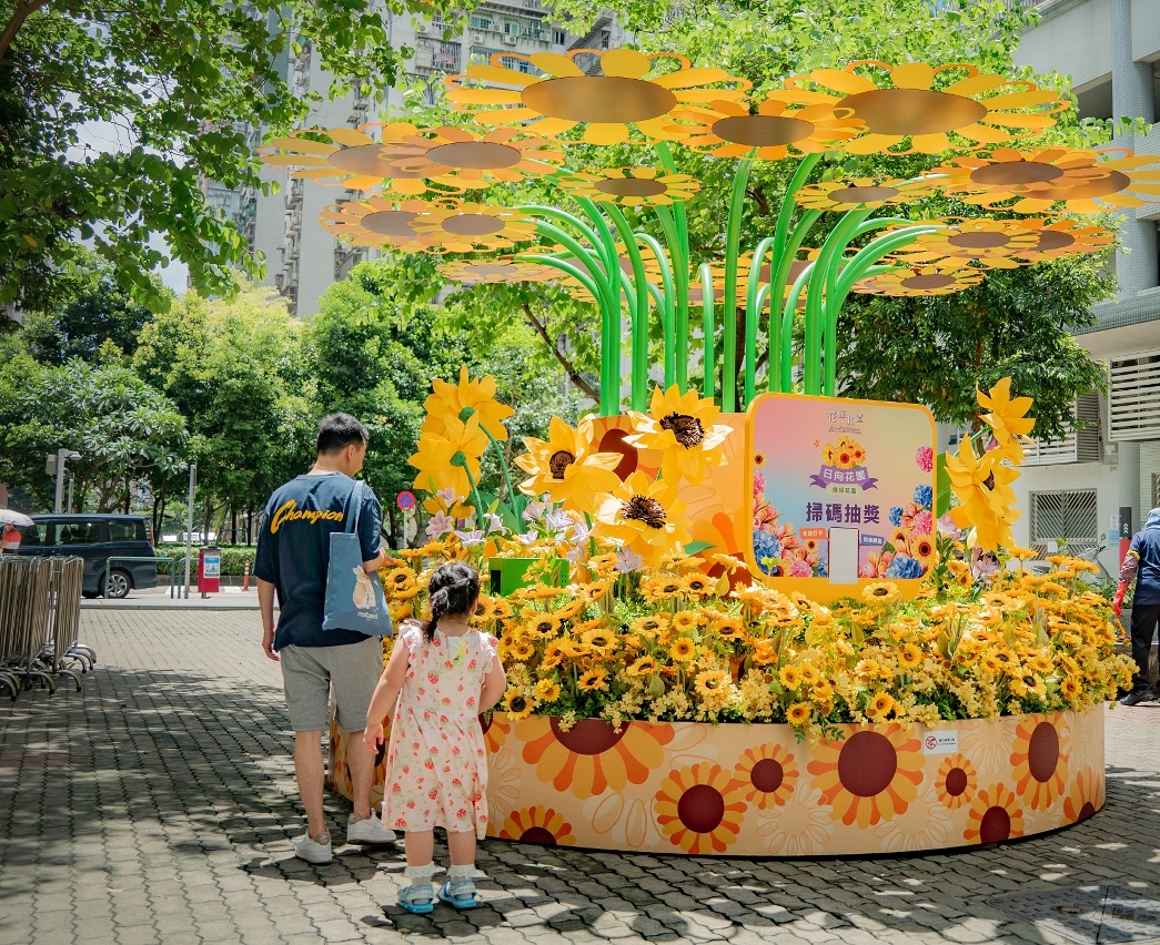 Despois de ter instalado 4 conjuntos de dispositivos de check-in de grande dimensão, a DSEDT lançou, em Junho, mais 4 conjuntos de dispositivos novos, a saber: “Aroma no sonho” na Zona de Lazer da Costa Oriental, “Jardim de girassol” na Zona de Lazer do Edifício Lok Yeung Fa Yuen, “Flores dançando na cortina de água” junto à Biblioteca Infantil da Areia Preta e “Quintal à tarde” no Jardim do Mercado do Iao Hon.