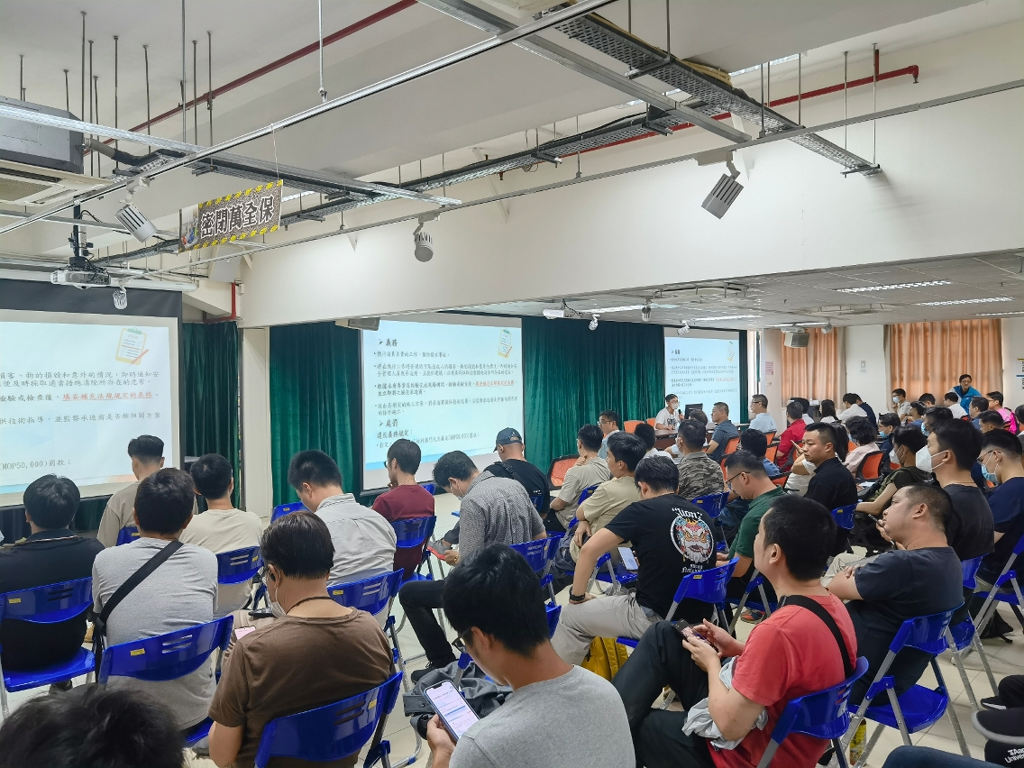 Para continuar a promover a sensibilização da segurança e saúde ocupacional junto do sector da construção civil em Macau e aumentar o nível de técnicas sobre segurança no trabalho, a Direcção dos Serviços para os Assuntos Laborais (DSAL), vai realizar no dia 25 de Junho de 2024, entre as 15h00e as 17h30, no Centro de Formação da Segurança e Saúde Ocupacional, sito na Rua Francisco Xavier Pereira, n.° 137, Edifício Industrial “Pou Fung”, 2.º andar “B”, um “Seminário sobre segurança no manuseamento de aparelhos elevatórios e na elevação e transporte de cargas”, destinado aos empreiteiros do sector da construção civil, engenheiros mecânicos ou eletromecânico designados, pessoal de segurança da construção, operadores de aparelhos elevatórios, sinaleiros e eventuais interessados. As inscrições para esse Seminário estão abertas a partir de 18 de Junho e terminam após esgotadas as vagas.