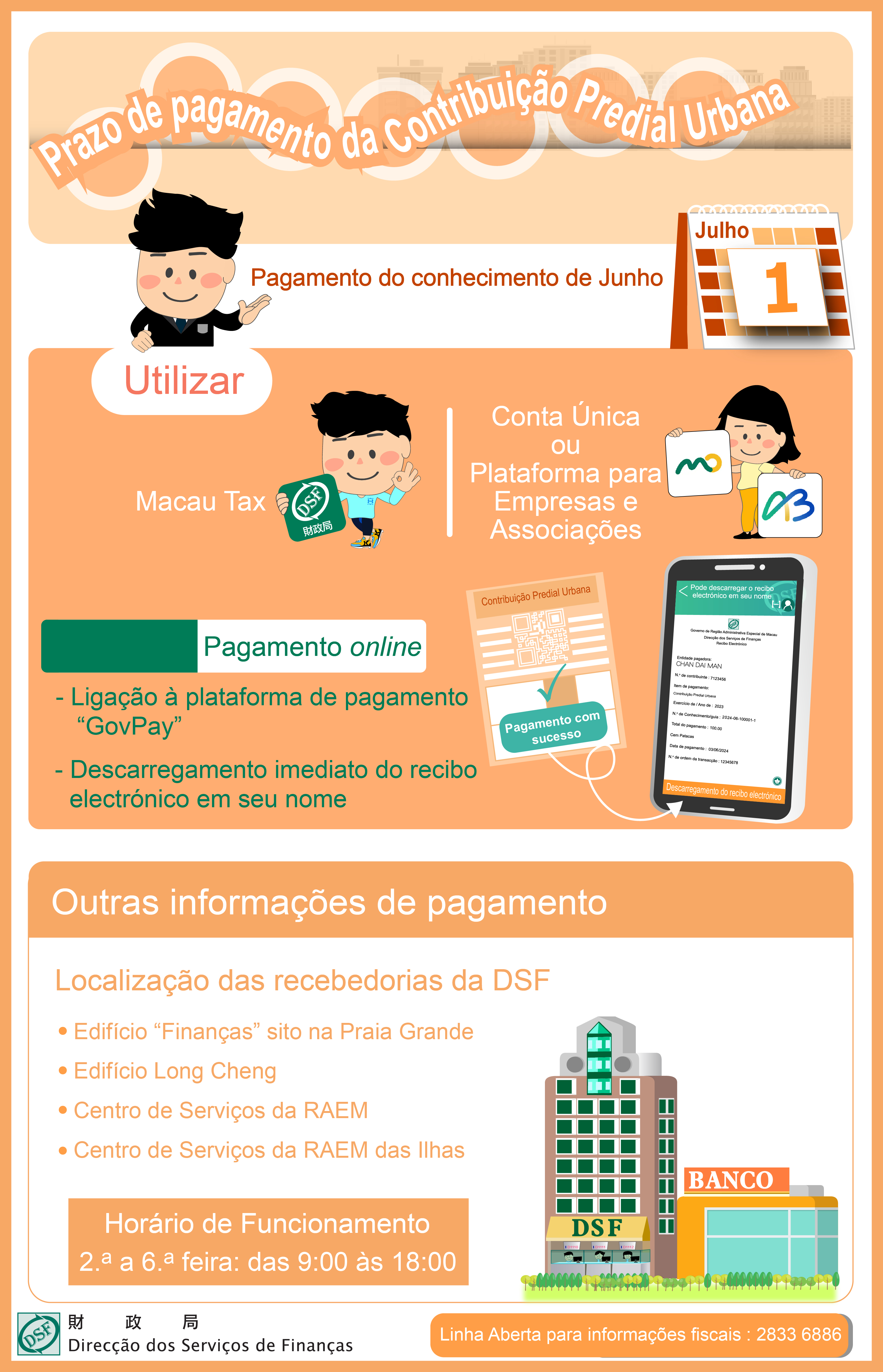 • O prazo para o pagamento da Contribuição Predial Urbana, respeitante ao mês de Junho, vai até ao dia 1 de Julho