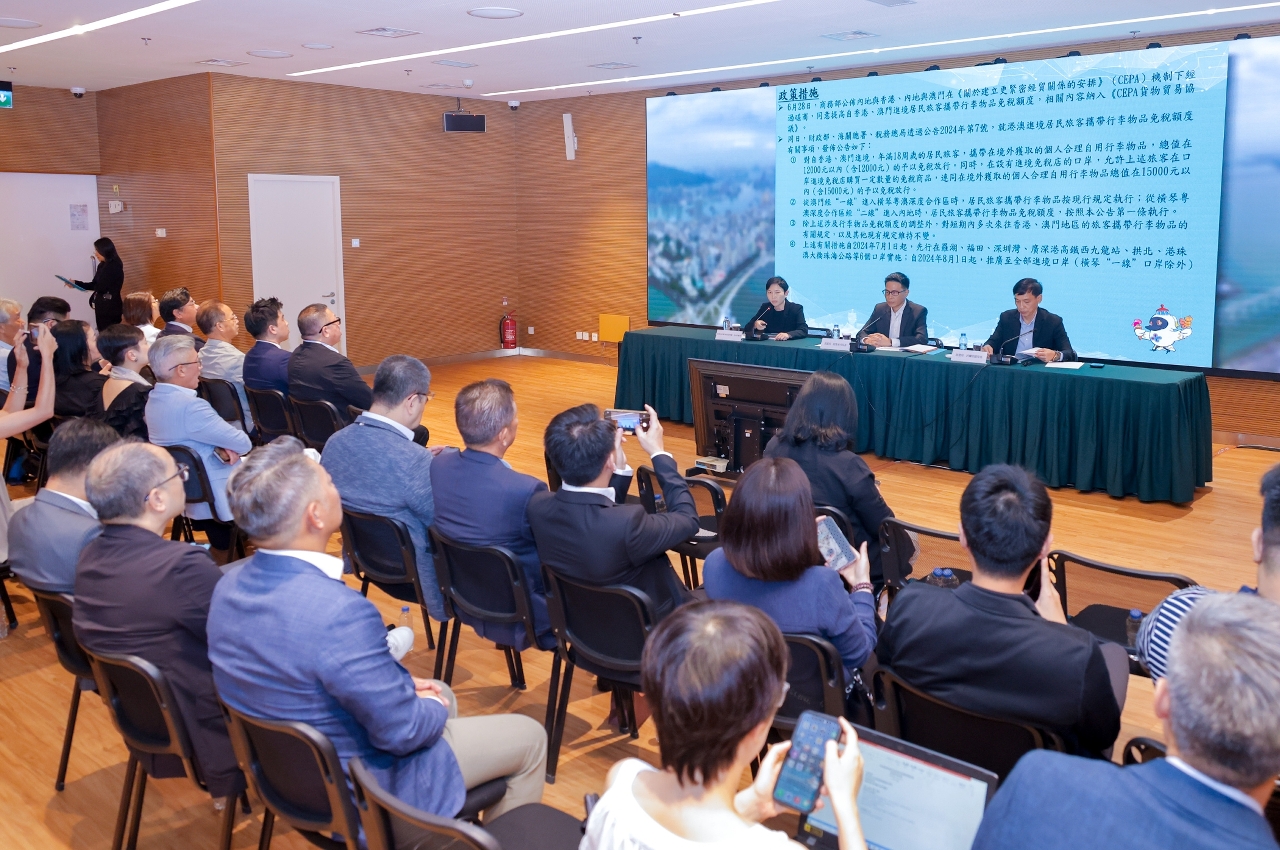 As novas medidas de aumento do limite de isenção fiscal de bens para uso pessoal transportados em bagagem pelos viajantes residentes no Interior da China que regressem ao País provenientes de Macau entrarão em vigor a 1 de Julho de 2024. Após a divulgação das medidas ontem (dia 28), a Direcção dos Serviços de Turismo (DST) realizou de imediato hoje (dia 29) à tarde um colóquio para representantes da indústria turística destinado a apresentar o conteúdo principal das medidas e os trabalhos de acompanhamento da DST. O encontro promoveu o aproveitamento das oportunidades e o pleno uso das medidas de apoio concedidas pelo Governo Central a Macau, que permitem dar mais um passo para impulsionar o desenvolvimento do turismo e do consumo nas zonas comunitárias, beneficiando comerciantes e pequenas e médias empresas locais.