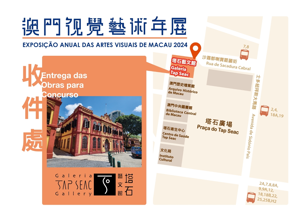 A “Exposição Anual das Artes Visuais de Macau” de 2024, organizada pelo Instituto Cultural, reúne a partir de agora obras de arte contemporânea de expressão plástica ocidental, incluindo obras bidimensionais, tridimensionais e multimédia. Os interessados poderão entregar os seus trabalhos na Galeria Tap Seac, de 19 a 21 de Julho, das 10:00 às 19:00 horas (com abertura durante a hora de almoço).