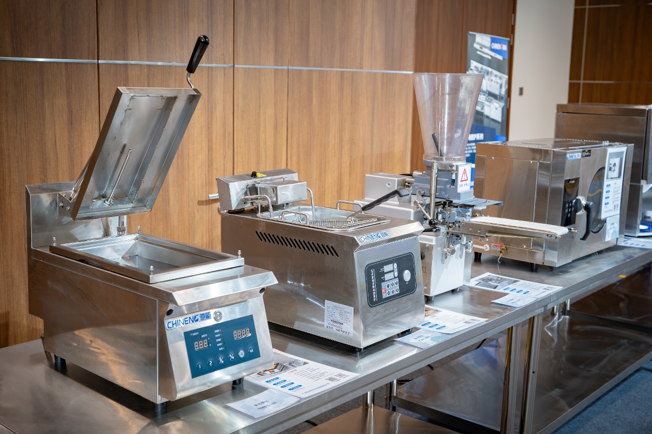 • Na Exposição serão aumentados a máquina para frigir dumplings, a fritadeira eléctrica a óleo com elevação automática, a máquina automática para fazer dumplings e o esterilizador a vapor.