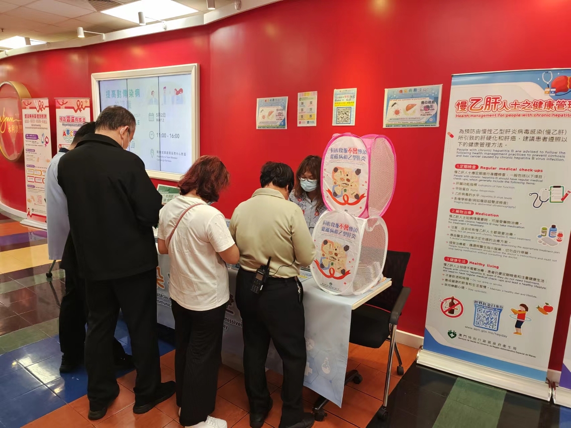 2. Durante o mês de Maio, os Serviços de Saúde, em colaboração com a Federação das Associações dos Operários de Macau e a Associação Geral das Mulheres de Macau, organizaram duas actividades do “Dia de Acompanhamento das Doenças Transmissíveis na Comunidade”, promovendo a prevenção de hepatite através de jogos em tendinha, e prestando serviços gratuitos e anónimos de teste rápido da hepatite C e da SIDA;