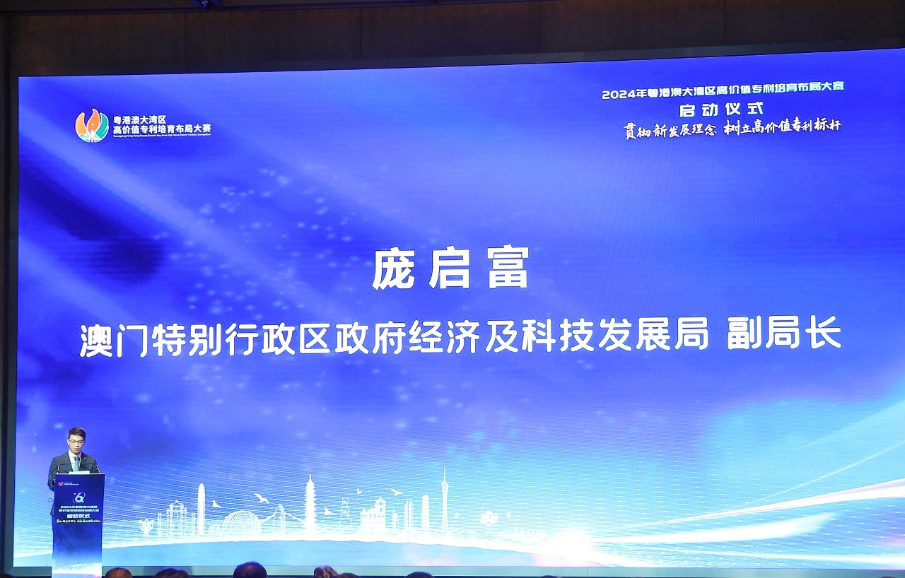 O “Concurso para o Esquema da Formação de Patentes de Alto Valor da Grande Baía Guangdong-Hong Kong-Macau 2024” (Concurso) arrancou oficialmente ontem (dia 8) em Jiangmen. Esta edição do Concurso foi organizada conjuntamente pela Administração de Regulação do Mercado da Província de Guangdong (Direcção da Propriedade Intelectual) da Província de Guangdong, pelo Governo Popular do Município de Jiangmen, pelo Departamento de Propriedade Intelectual da RAEHK e pela Direcção dos Serviços de Economia e Desenvolvimento Tecnológico (DSEDT) da RAEM e decorrerá no período entre Agosto e Dezembro de 2024. E as fases preliminar, semifinal e final terão lugar em Jiangmen.