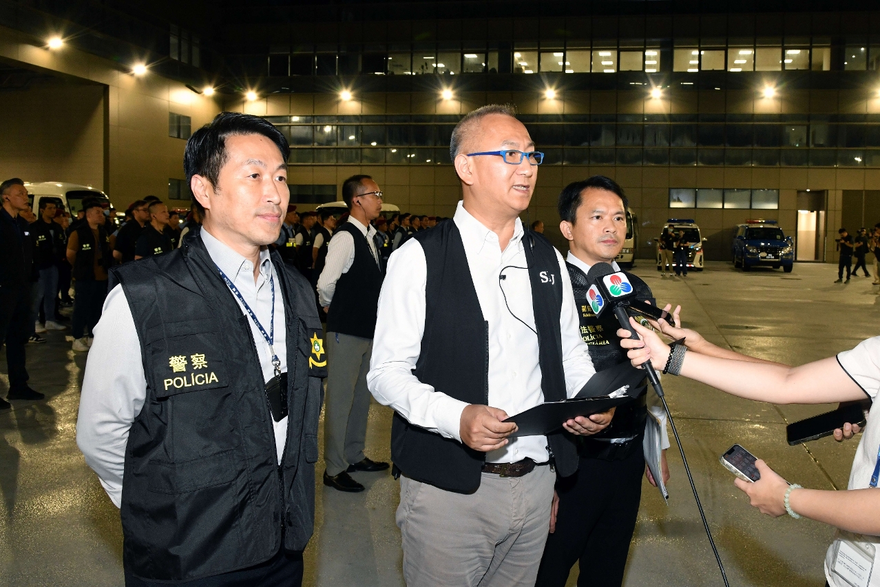 Na noite de ontem (15 de Agosto), pelas 22h00, os Serviços de Polícia Unitários (SPU), juntamente com os Serviços de Alfândega (SA), o Corpo de Polícia de Segurança Pública (CPSP) e a Polícia Judiciária realizaram uma mega operação policial conjunta, tendo realizado acções de fiscalização a diversos estabelecimentos de diversão situados em Macau e no Cotai, nomeadamente casinos, clubes nocturnos, casas de sauna, bares, entre outros locais, tendo reforçado também as acções de intercepção e de fiscalização nos postos fronteiriços e nas zonas costeiras e marítimas. A operação terminou às 3h30 da madrugada de hoje (16 de Agosto), tendo mobilizado 354 agentes policiais e alfandegários e 6 equipas cinotécnicas. Os SA mobilizaram 2 embarcações de patrulha, 4 lanchas de alta velocidade e a equipa de drones.
