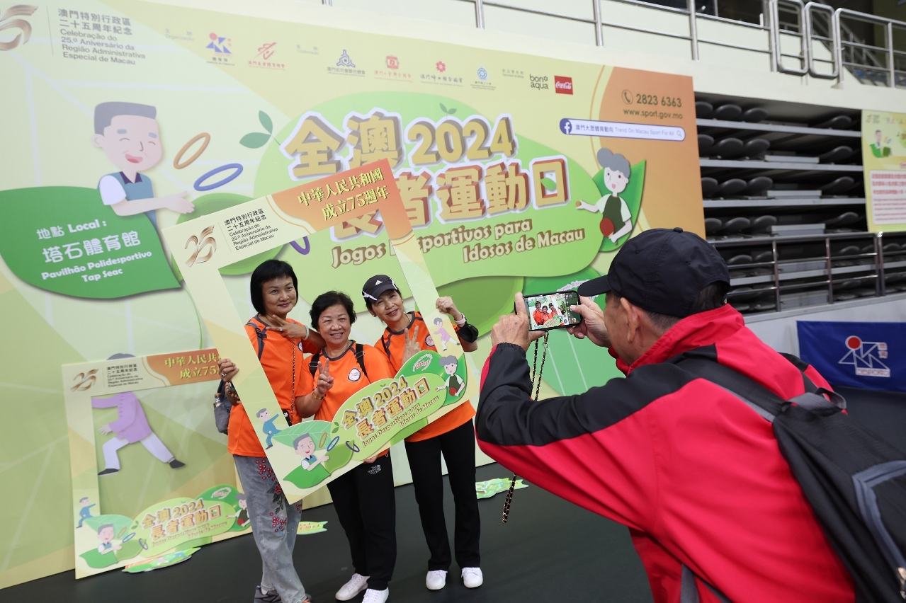 Com o intuito de celebrar o 75.º aniversário da implantação da República Popular da China e o 25.º aniversário do estabelecimento da R.A.E.M., os Jogos Desportivos para Idosos de Macau 2024, co-organizados pelo Instituto do Desporto e pela União Geral das Associações Desportivas dos Idosos de Macau, com a colaboração da União Geral das Associações dos Moradores de Macau, da Federação das Associações dos Operários de Macau, da Associação Geral das Mulheres de Macau e da Academia do Cidadão Sénior da Universidade Politécnica de Macau, tiveram lugar hoje (18) no Pavilhão Polidesportivo Tap Seac. O evento atraiu a adesão de um grande grupo de idosos, que tiveram momentos divertidos à prática desportiva nas actividades recreativas e desportivas e na avaliação da condição física.