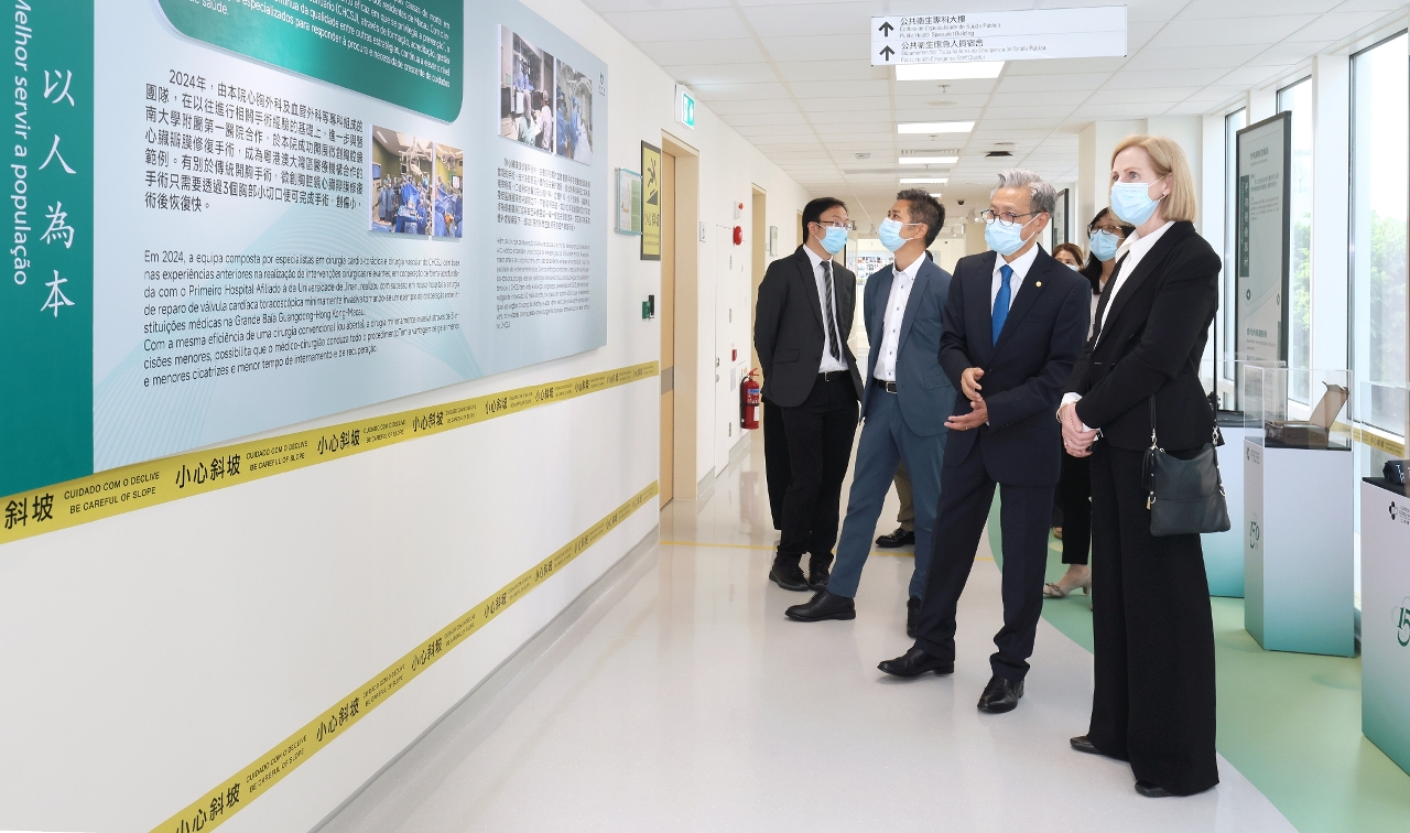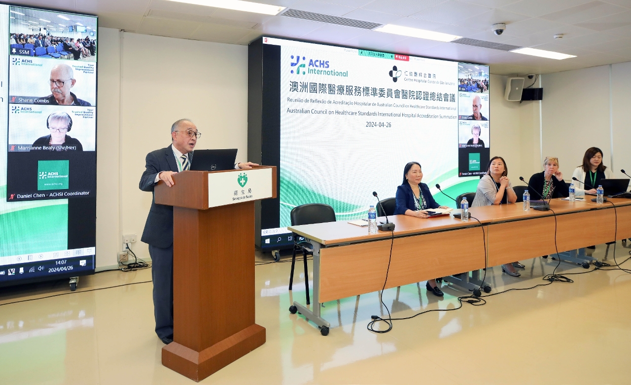 Na cerimónia, o Director Lo Iek Long manifestou o seu agradecimento à liderança e ao apoio da Secretária Drª. Ao Ieong U e da Chefe Drª. Ho Ioc San, bem como à equipa de gestão hospitalar e a todos os trabalhadores pela sua dedicação profissional e trabalho árduo. O responsável salientou que este ano é o ano de 150.º aniversário do CHCSJ, e este dispõe de 29 especialidades, mais de 1100 camas hospitalares e cerca de 2800 trabalhadores, sendo uma parte importante do sistema de cuidados de saúde de Macau, pelo que neste momento significativo, o facto de o hospital ter obtido, mais uma vez, a acreditação internacional é um reconhecimento dos Serviços de Saúde de Macau. No futuro, nas orientações do «Plano de Acção para Macau Saudável», baseadas no objectivo de “Tratamento eficaz em que se privilegia a prevenção” e “Ter por base a população”, os Serviços de Saúde irão continuar a reforçar a saúde pública, os cuidados de saúde comunitários, a elevação da capacidade das especialidades hospitalares e a sua colaboração e ligação, que empenham-se na construção de um sistema integrado de saúde pública e de serviços médicos, de modo a concluir as três tarefas principais, nomeadamente a construção de uma cidade saudável Macau, a optimização dos serviços médicos e a promoção do desenvolvimento industrial. Por fim, o Director esperava que as entidades públicas e privadas possam cooperar, de forma progressiva, com complementaridade de vantagens mútuas, no sentido de incentivar, em conjunto, o desenvolvimento de alta qualidade do sector da saúde de Macau e contribuir para a protecção da saúde e do bem-estar da população.
