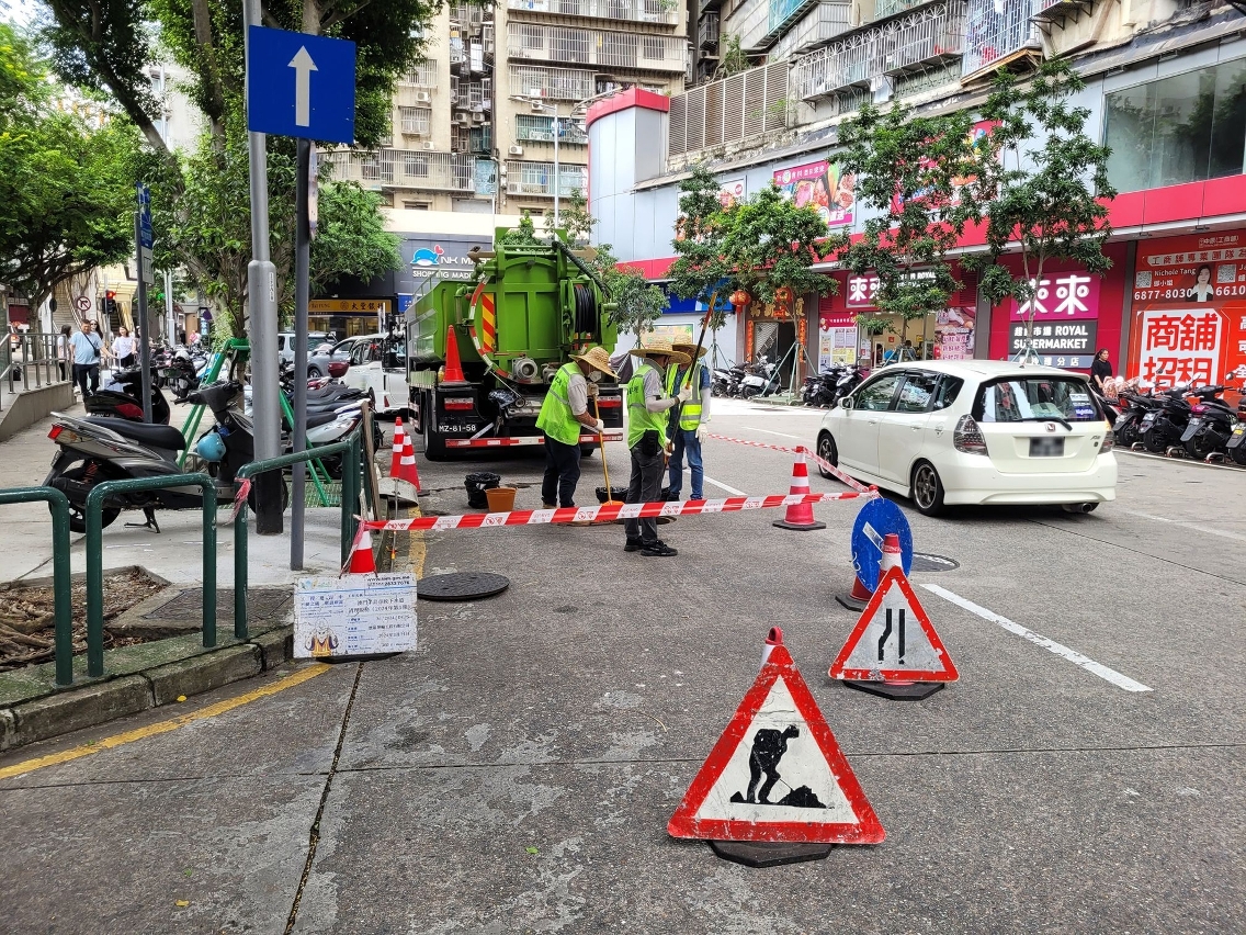 O IAM continua a destacar pessoal para proceder à inspecção dos esgotos e sumidouros das diversas zonas, com vista a garantir a capacidade de drenagem das redes de esgotos públicos, distribuir pessoal e viatura-bomba para reforçar os trabalhos de drenagem. Entre Janeiro e Agosto do corrente ano, concluiu a remoção de resíduos de cerca de 157 mil metros de esgotos e procedeu a mais de 20 mil acções de limpeza de sumidouros. Recentemente, procedeu ao desentupimento dos esgotos nas zonas da Praça das Portas do Cerco, da Areia Preta, do Fai Chi Kei, do Porto Interior e da Vila da Taipa, dando prioridade ao reforço do desentupimento dos locais onde a presença de água estagnada ocorre com mais frequência. Por outro lado, o Instituto concluiu, durante as férias de Verão, a triagem dos esgotos na Praça das Portas do Cerco, Rua das Indústrias da Areia Preta, entre outros locais, bem como a obra de drenagem da parte inferior dos esgotos da Avenida do Coronel Mesquita, com vista a melhorar a capacidade de drenagem. Ao içar do sinal de chuva intensa e do sinal n.º 8 de tufão, o IAM activa de imediato o mecanismo de contingência, fiscalizando e garantindo de forma contínua o funcionamento das instalações de drenagem, com o pessoal adjudicado a prestar apoio na inspecção das diversas zonas e nos trabalhos urgentes de desobstrução.
