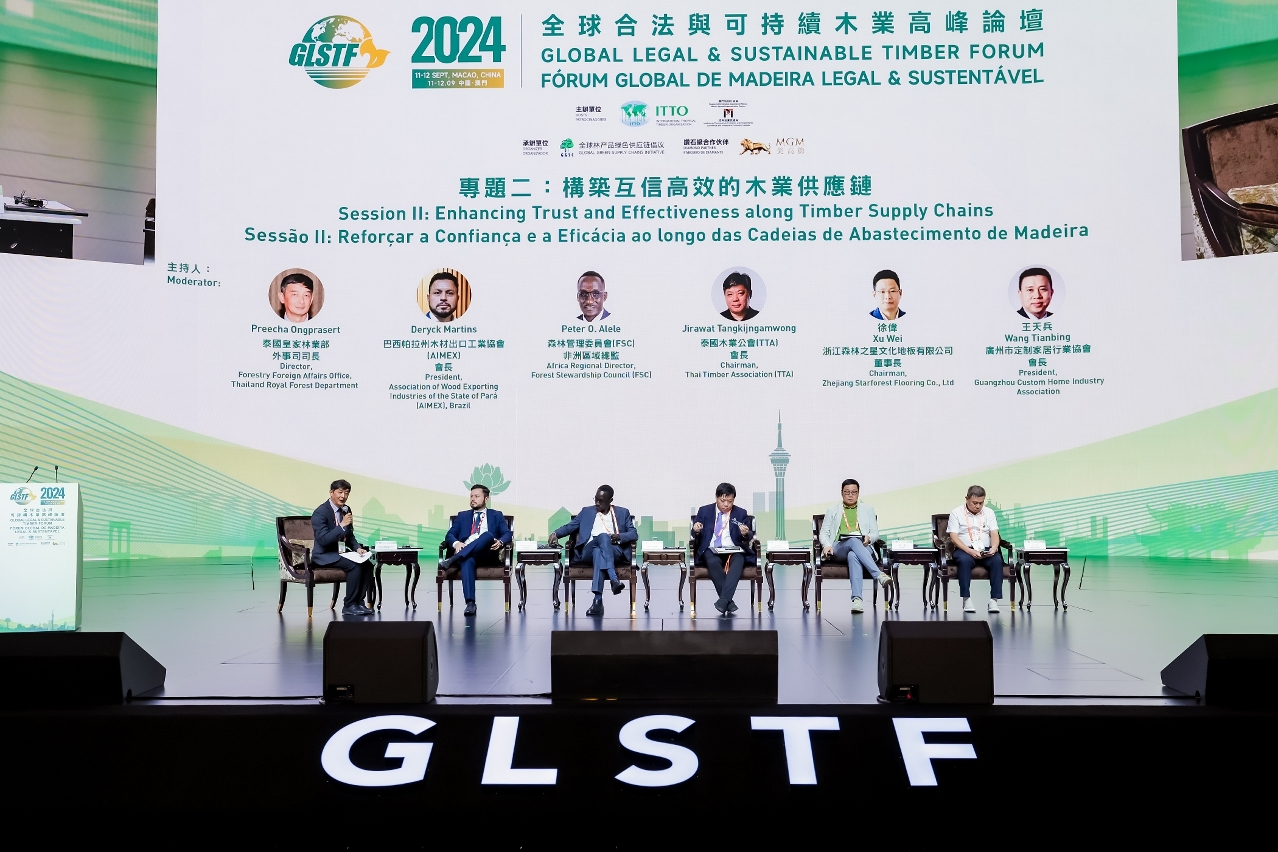 Com a duração de dois dias, o Fórum Global de Madeira Legal e Sustentável 2024 (GLSTF2024) encerrou hoje (dia 12), com êxito. Foram realizados uma cimeira de fórum, quatro subfóruns especializados, várias reuniões paralelas e sessões de encontros comerciais, tendo atraído a participação de cerca de 800 convidados, provenientes de mais de 40 países e regiões. Durante o evento, foram publicados dois resultados de investigação e três planos de acção de colaboração transnacional, com vista a promover a cooperação internacional na cadeia de abastecimento de madeira legal e sustentável.