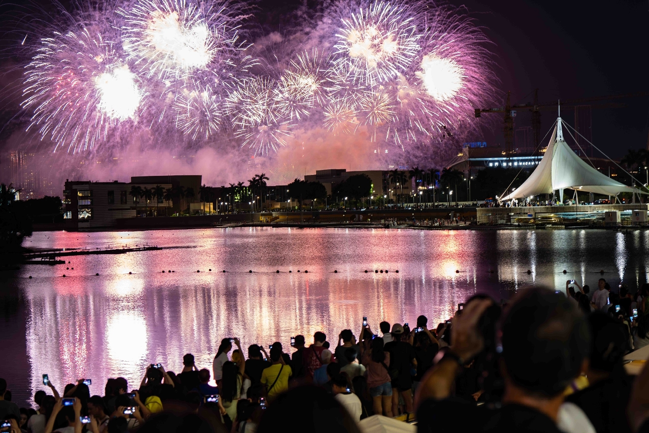 O evento “Celebração do 75.º Aniversário da Fundação da República Popular da China e do 25.º Aniversário do Regresso de Macau à Pátria - 32.° Concurso Internacional de Fogo-de-Artifício de Macau” (CIFAM), organizado pela Direcção dos Serviços de Turismo (DST), prossegue amanhã (dia 21) em celebração do “duplo aniversário”. As exibições de amanhã à noite serão apresentadas por companhias pirotécnicas de Espanha e das Filipinas, às 21h e 21h40, respectivamente. Residentes e visitantes podem apreciar os espectáculos nos cinco melhores pontos de visionamento, na expectativa de que o colorido evento nocturno de marca impulsione o fluxo de pessoas e promova a economia comunitária.