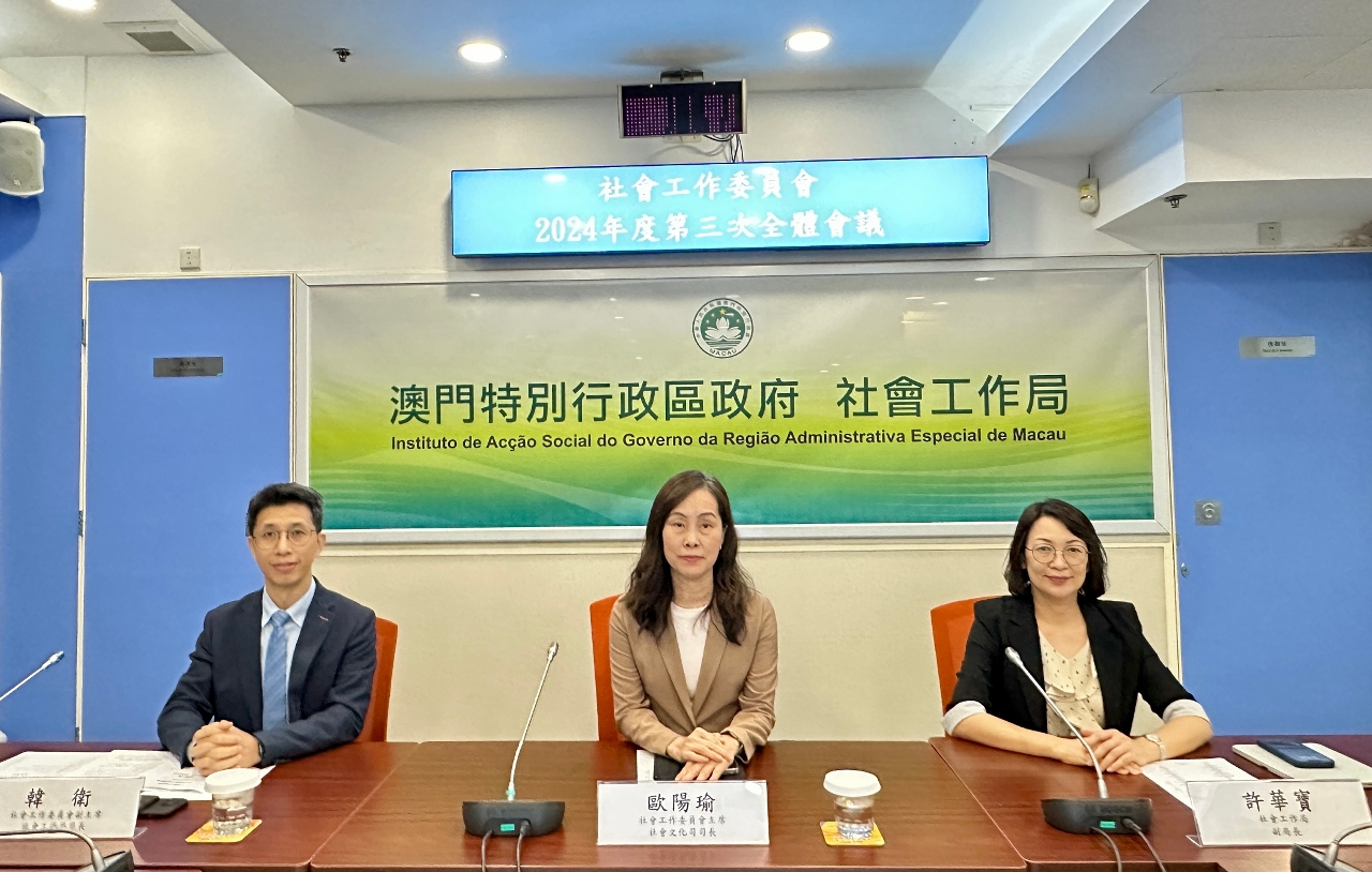 O Conselho de Acção Social (CAS) realizou hoje (dia 23) a 3.ª sessão plenária em 2024, a qual foi presidida pela Secretária para os Assuntos Sociais e Cultura, também presidente do CAS, Ao Ieong U. Concluíram-se, durante a sessão, a apreciação de um pedido de reconhecimento da pessoa colectiva como pertencente ao sector dos serviços sociais e a apreciação de um pedido de renovação do respectivo reconhecimento.