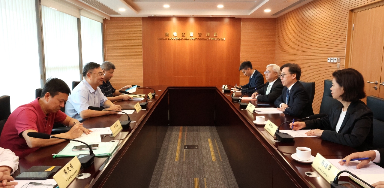 Durante a reunião, o Presidente Choi referiu que o regime de administração de dispositivos médicos de Macau entrará em breve no processo legislativo, sendo necessário reforçar a formação e a construção de capacidade do pessoal de avaliação de dispositivos médicos, o Subdirector Yan afirmou que a Administração de Medicamentos da Província de Guangdong irá prestar todo o apoio. Na reunião foram ainda abordados temas como a formação do pessoal de supervisão farmacêutica de Macau, o mecanismo de cooperação na inspecção de fabrico por encomenda transfronteiriça, bem como a abertura da participação dos profissionais farmacêuticos de Macau na educação contínua dos farmacêuticos em exercício da profissão da Província de Guangdong.