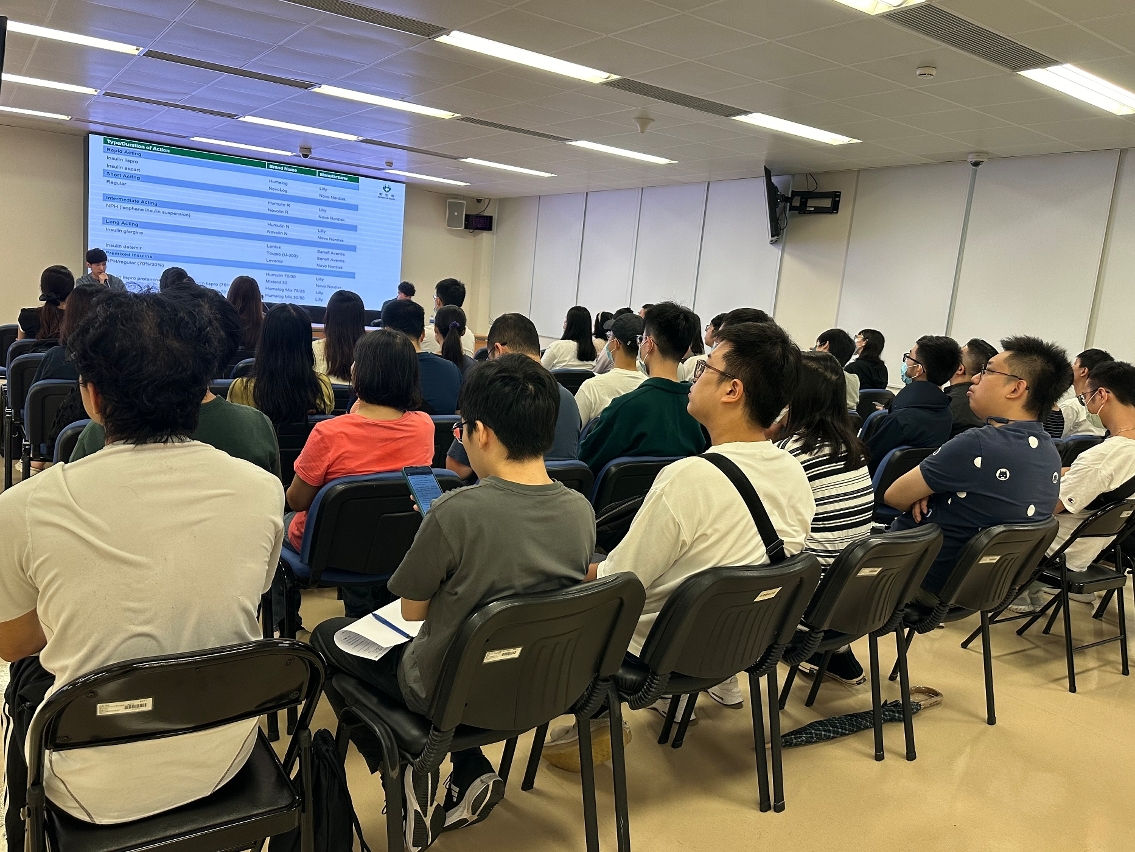 O Dr. Lio Ka Lok e o Dr. Lei Man Hang, farmacêuticos da Divisão de Farmácia do Centro Hospitalar Conde de São Januário dos Serviços de Saúde, partilharam os conhecimentos profissionais e as técnicas de orientação que os farmacêuticos devem dominar no aconselhamento de medicamentos para doentes diabéticos. Os seus conteúdos incluíram os princípios de uso de medicamentos orais e injectáveis, os métodos de tratamento de efeitos secundários e a forma de identificação dos primeiros sinais de complicações, entre outros aspectos. Através da discussão de casos e da partilha de experiências, pretenderam-se elevar a capacidade dos farmacêuticos na promoção da auto-gestão de saúde dos doentes, atingindo o objectivo de detecção precoce e tratamento médico atempado, reduzindo o risco de agravamento da doença.