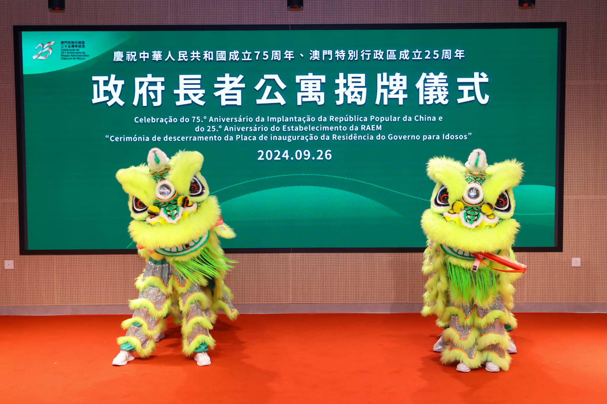 Após a Cerimónia, os convidados assistiram a um espectáculo de dança do leão apresentado por estudantes da Escola Luso-Chinesa da Taipa, dança que simboliza bom augúrio, felicidade, paz e saúde. Durante o evento, foi também exibido um vídeo de retrospectiva sobre o processo de estabelecimento da Residência do Governo para Idosos, desde a preparação para a sua construção até a sua inauguração. A seguir, os convidados realizaram uma visita aos apartamentos residenciais para conhecer os equipamentos de gerontecnologia e acessíveis instalados nos apartamentos, seguida da deslocação ao terraço com jardim, onde visitaram as salas de bilhar e de ténis de mesa, entre outras instalações desportivas. Posteriormente, visitaram o centro de controlo para pessoal de segurança e de apoio, onde se inteiraram do modo de funcionamento da plataforma de gestão da Residência do Governo para Idosos e assistiram aos testes realizados com a plataforma. Mais visitaram o centro de manutenção de saúde para idosos, apetrechado com equipamentos para a promoção da saúde, para o diagnóstico e tratamento, bem como para treinos de reabilitação. Por fim, visitaram a área de serviço do restaurante (cha chaan teng) e a cozinha equipada com utensílios e equipamentos inteligentes para a confecção de alimentos, bem como inteiraram-se da situação de preparação para o funcionamento do restaurante.