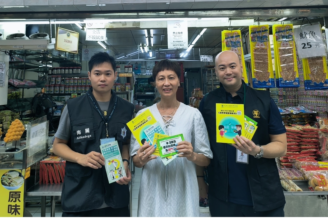 Além disso, no intuito de assegurar os direitos e interesses de consumo, nas vésperas dos feriados do Dia Nacional, o CC juntou-se aos SA, à Direcção dos Serviços de Turismo (DST) e à Direcção dos Serviços de Economia e Desenvolvimento Tecnológico (DSEDT) para fiscalizar e inspeccionar em vários pontos de compras para excursões, alertando às lojas para explorar actividades à luz da lei e manter uma boa ordem para os sectores turísticas e retalhistas.