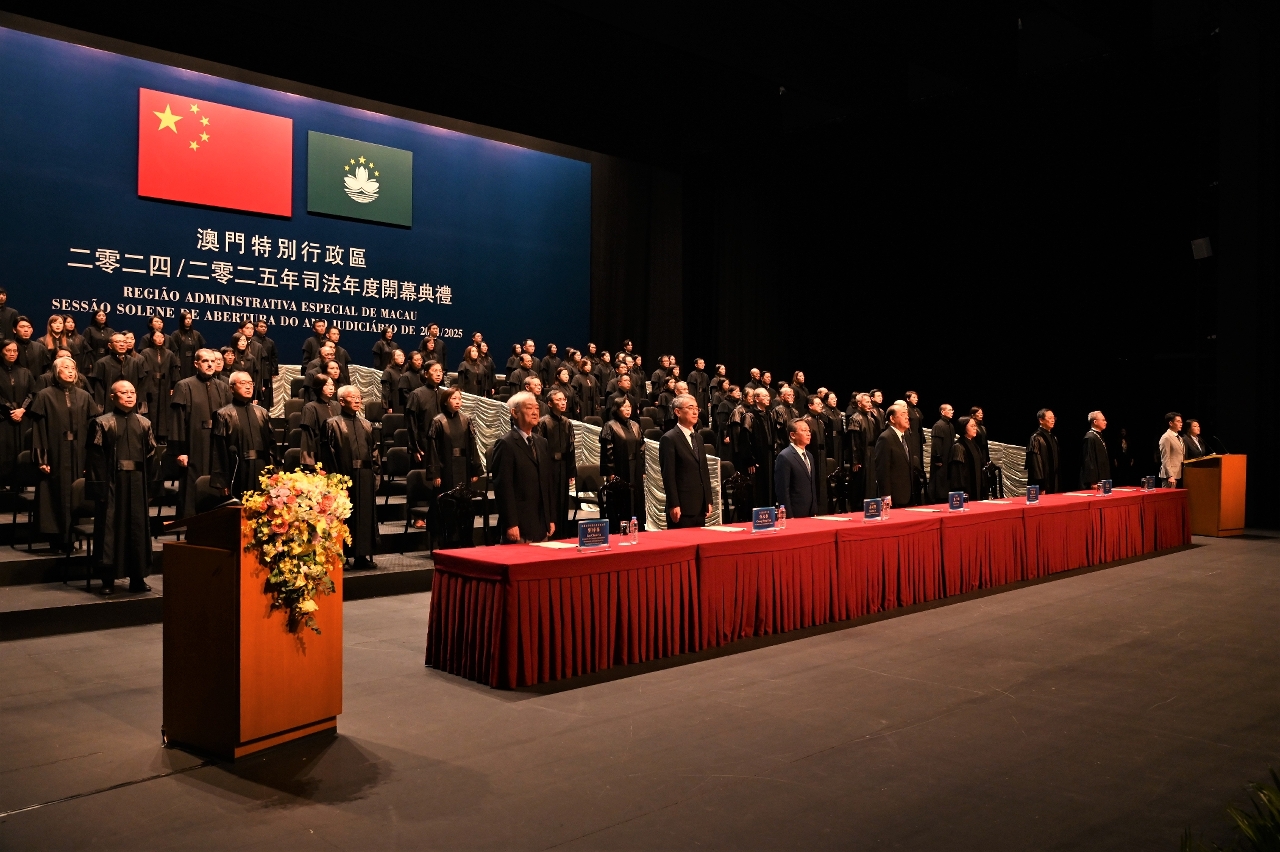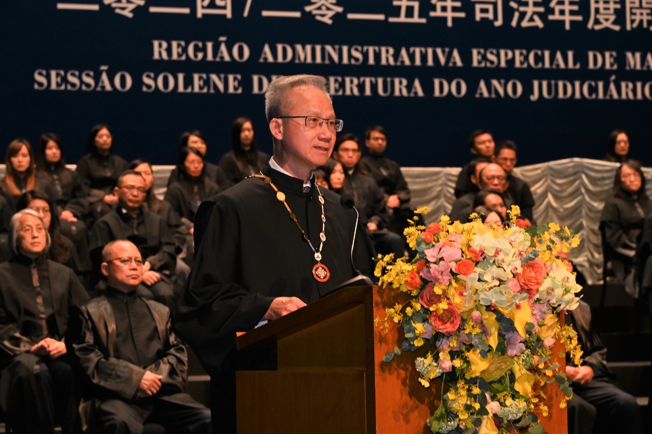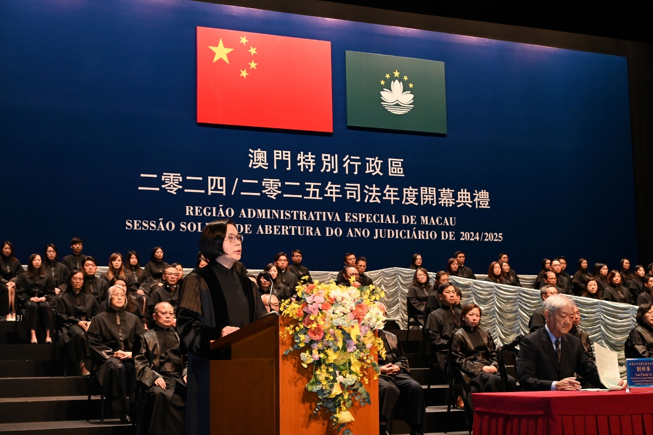 Realizou-se a Sessão Solene de Abertura do Ano Judiciário de 2024/2025, no dia 17 de Outubro, pelas 15h30, no Grande Auditório do Centro Cultural de Macau. O Chefe do Executivo, Dr. Ho Iat Seng, presidiu à Sessão que contou com a presença na tribuna de honra dos Presidente da Assembleia Legislativa, Dr. Kou Hoi In, Presidente Substituta do Tribunal de Última Instância, Dra. Song Man Lei, Secretário para a Administração e Justiça, Dr. Cheong Weng Chon, Procurador, Dr. Ip Son Sang, Presidente da Comissão Independente para a Indigitação de Juízes, Dr. Lau Cheok Va, e Presidente da Direcção da Associação dos Advogados de Macau, Dr. Vong Hin Fai.