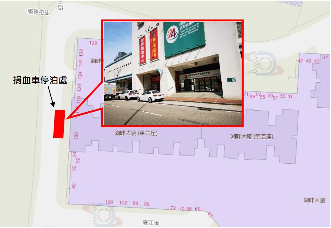 A doação de sangue no veículo itinerante do Centro de Transfusões de Sangue irá funcionar, das 11h00 às 17h00 no dia 29 de Outubro (terça-feira), no lugar de estacionamento reservado para as cargas e descargas de veículos, situado na Rua dos Açores, junto do Edifício do Lago (Bloco 6), Taipa (à porta do supermercado San Mio), com vista a facilitar a doação de sangue pelos residentes e o aumento da recolha de sangue.