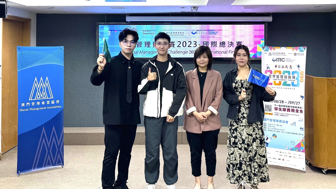 Mais de 1 000 equipas de todo o mundo participaram no “Global Management Challenge 2023”. O concurso regional de Macau foi organizado pela Associação de Gestão (Management) de Macau, contando com a participação de 106 equipas, incluindo 93 equipas de estudantes e 13 equipas de empresas e equipas mistas. A equipa da UPM venceu o concurso regional de Macau e representou Macau na final internacional, na qual a equipa da UPM, com excelentes estratégias competitivas e espírito de equipa, liderou os adversários em várias rondas e conquistou o terceiro lugar. O primeiro e segundo lugares foram atribuídos respectivamente às equipas da China e da Índia.