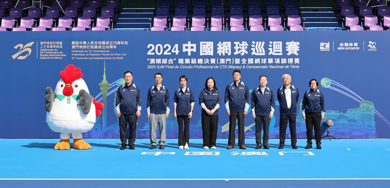 Em celebração do 75.º Aniversário da Implantação da República Popular da China e do 25.º Aniversário do Estabelecimento da RAEM, realizou-se hoje (18) a Inauguração do 2024 SJM Final do Circuito Profissional de CTA (Macau) & Campeonato Nacional de Ténis na Academia de Ténis de Macau.
