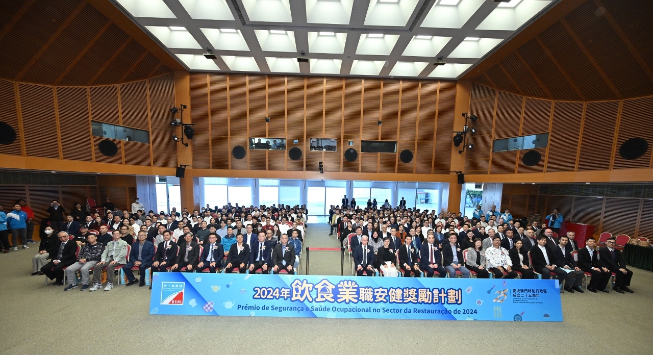 O fórum e cerimónia de atribuição de prémios relativos ao “Prémio de segurança e saúde ocupacional no sector da restauração 2024”, organizada pela DSAL, teve lugar na tarde do dia 27 de Novembro na sala de conferências do Centro de Ciência de Macau. Nesta edição, o número de restaurantes e de participantes bateram o recorde, com um total de 71 restaurantes e 145 profissionais de gestão de segurança e trabalhadores, tendo sido bem aceite pelo público.