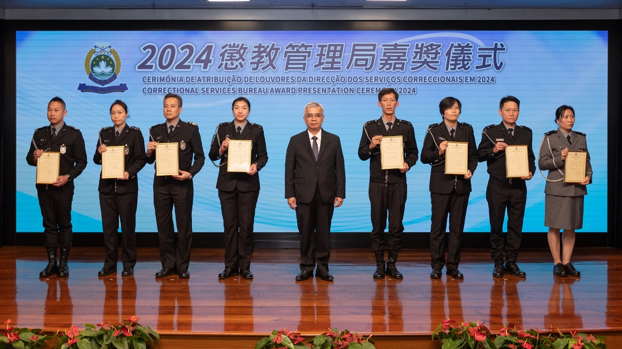 Na tarde do dia 2 de Dezembro, a Direcção dos Serviços Correccionais (DSC) realizou a Cerimónia de Atribuição de Louvores 2024 no auditório da Escola Superior das Forças de Segurança de Macau, no intuito de elogiar os trabalhadores a título individual e colectivo com desempenho notável neste ano, atribuir os troféus por aposentação honrosa e medalhas por longo tempo de serviço, como forma de mostrar pleno reconhecimento dos seus contributos, estimular o moral e aumentar a coesão do corpo correccional, bem como efectuar o balanço do trabalho do ano. A cerimónia foi presidida pelo Secretário para a Segurança, Wong Sio Chak.