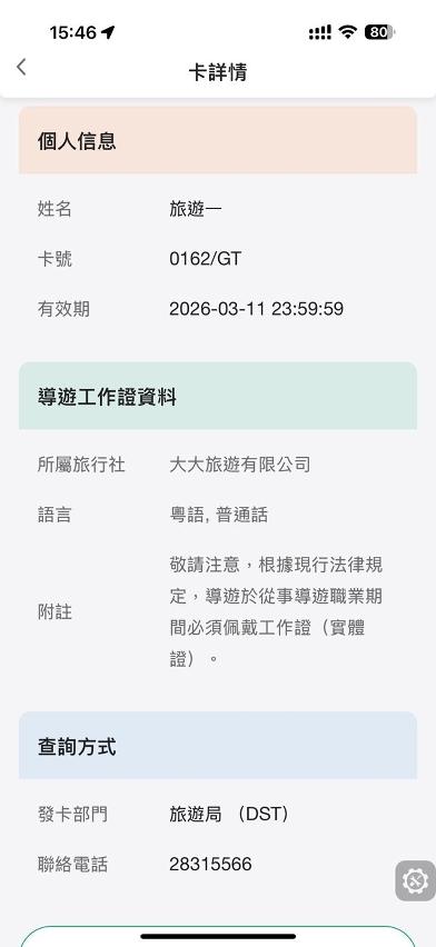 Os guias turísticos, portadores do cartão de identificação válido, podem ainda consultar a Conta Única de Macau e declarar as informações das agências de viagens aonde prestam serviço. O processo de declaração é simples, sendo automaticamente validado sem necessidade de aprovação, o que facilita a actualização das informações a qualquer momento por parte dos guias turísticos, de acordo com a situação de trabalho.
