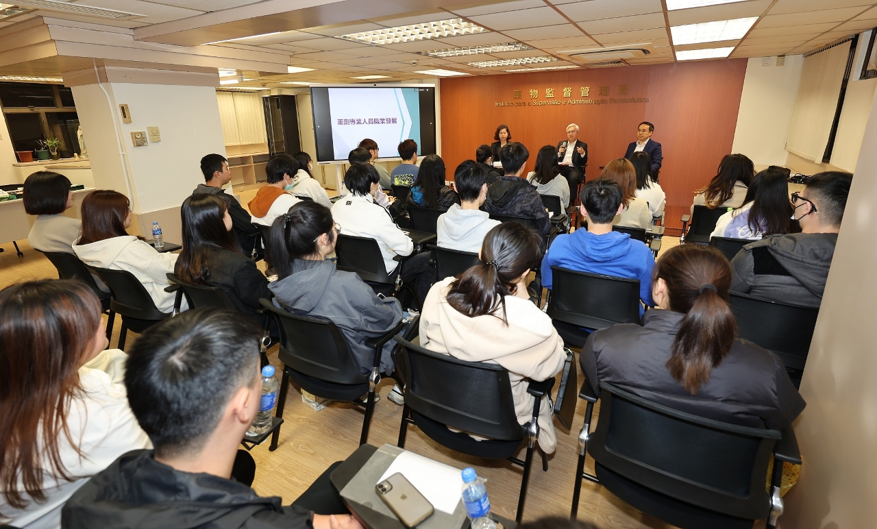 O Instituto para a Supervisão e Administração Farmacêutica (ISAF) realizou uma sessão de intercâmbio para os estagiários de profissão farmacêutica do ano 2024/2025 no dia 18 de Dezembro, para apresentar aos farmacêuticos, farmacêuticos de medicina tradicional chinesa e ajudantes técnicos de farmácia, que iniciarão os seus estágios no Janeiro de 2025, sobre a situação actual e perspectivas futuras do desenvolvimento da profissão farmacêutica, esperando que os estagiários, através dos estágios, possam acumular experiências e preparar bem o planeamento de carreira profissional, encorajando-os a fazer avanços activamente durante o exercício das actividades profissionais no futuro, bem como prosseguir a aprendizagem ao longo da vida.