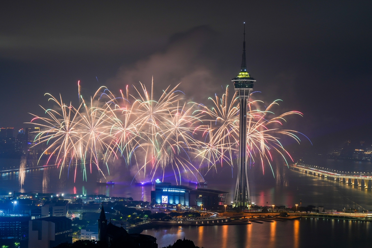 O “Espectáculo de Fogo-de-Artifício para as Celebrações do 25.º Aniversário do Estabelecimento da RAEM”, apresentado pela Direcção dos Serviços de Turismo (DST) no ano em que se celebra o “duplo aniversário”, teve lugar esta noite (dia 25). O espectáculo de fogo-de-artifício, que se juntou ao grande evento nocturno Iluminar Macau 2024, para dar a sentir aos residentes e visitantes a alegria da celebração do 25.º aniversário do retorno de Macau à Pátria, decorreu num ambiente de grande animação, mostrando a vitalidade do “turismo + eventos” de Macau.