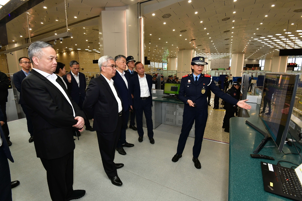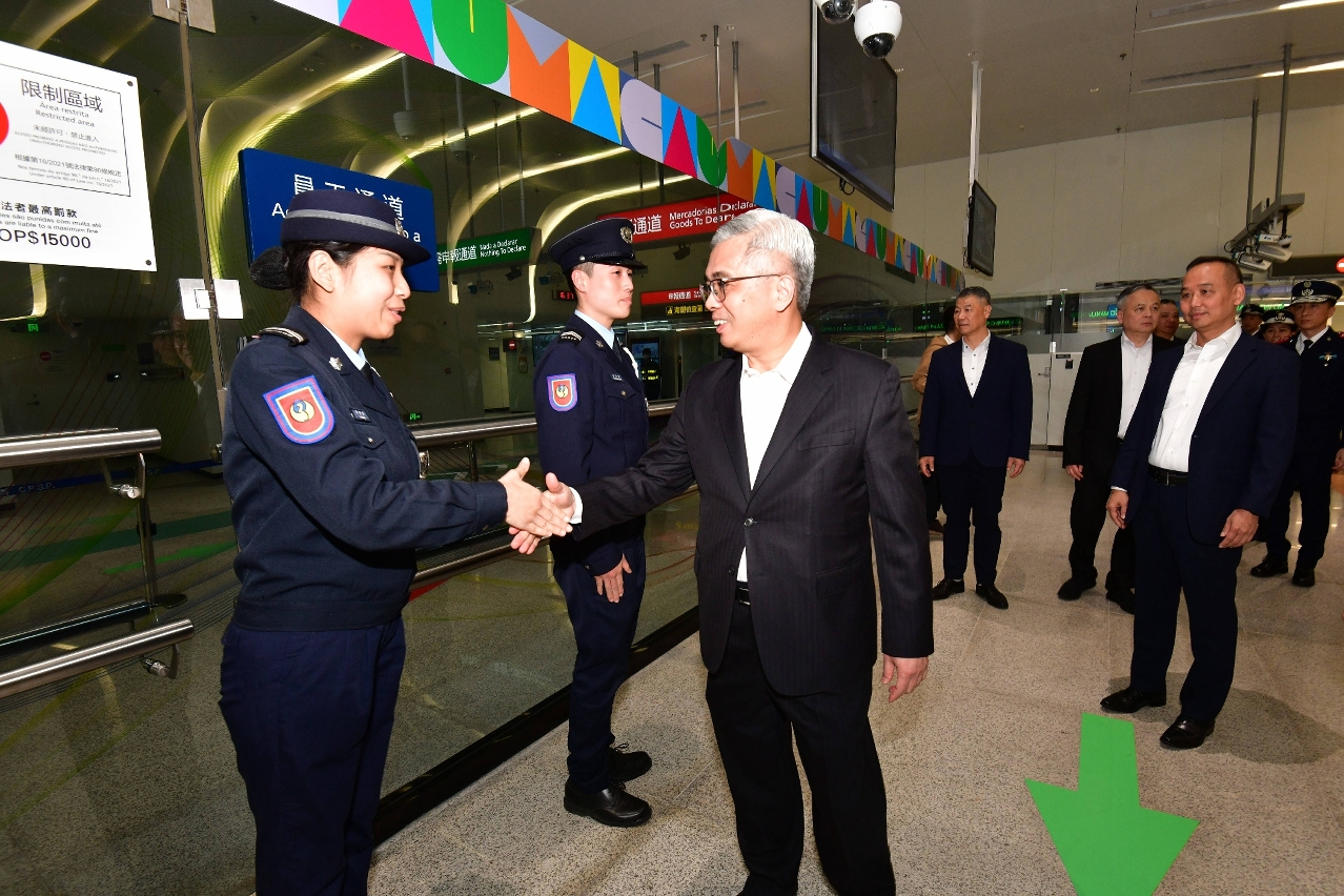 O Secretário para a Segurança e a sua comitiva deslocaram-se, em primeiro lugar, às Ruínas de S. Paulo e à Avenida de Almeida Ribeiro, a fim de observar a situação de fluxo de multidões e de veículos, e monitorizar as alterações de trânsito introduzidas. Foi igualmente inspeccionado o funcionamento do sistema de previsão e aviso do fluxo de pessoas e das medidas de controlo de multidões, tendo sido dados instruções para assegurar a segurança e a ordem nas zonas turísticas. Posteriormente, o Secretário para a Segurança visitou a Zona do Posto Fronteiriço de Macau do Posto Fronteiriço Hengqin, verificando a situação da passagem fronteiriça, as medidas de melhoria adoptadas durante o Ano Novo Lunar, o funcionamento dos corredores de entrada e saída para veículos e as áreas de inspecção alfandegária, onde se inteirou dos trabalhos de inspecção aduaneira. Durante a visita, o Secretário Wong Sio Chak deu instruções aos serviços competentes para envidarem todos os esforços para assegurar a passagem nas fronteiras sem sobressaltos, encorajando-os a continuarem a seguir o conceito de “servir melhor o cidadão”, mostrando uma imagem profissional da Polícia, para que os cidadãos e turistas se sintam tranquilos.