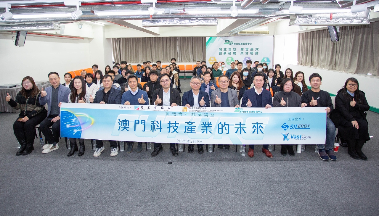 Com o objectivo de ajudar os jovens de Macau a conhecerem as oportunidades de emprego oferecidas pela indústria tecnológica de Macau, a Direcção dos Serviços para os Assuntos Laborais (DSAL), a Direcção dos Serviços de Economia e Desenvolvimento Tecnológico (DSEDT) e o Macau Youth Development Service Centre organizaram, em conjunto, no dia 9 de Fevereiro de 2025, um seminário intitulado “O Futuro da Indústria Tecnológica de Macau”, contando com a presença de cerca de 70 jovens neste evento, numa discussão que se realizou em atmosfera dinâmica.