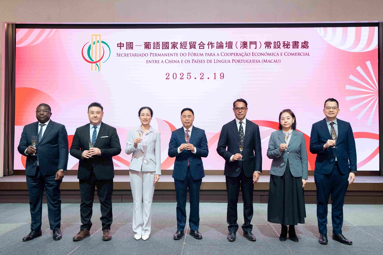 A 19 de Fevereiro, o Secretariado Permanente do Fórum para a Cooperação Económica e Comercial entre a China e os Países de Língua Portuguesa realizou o jantar de recepção no The Banquet Hall da Torre de Macau. Aproveitando a ocasião, a entidade anfitriã teve a oportunidade de trocar impressões com os responsáveis dos corpos diplomáticos dos Países de Língua Portuguesa acreditados na China e dos órgãos da comunicação social de Macau de línguas chinesa, portuguesa e inglesa. Os membros do Secretariado Permanente, chefiados pelo Secretário-Geral Ji Xianzheng, estiveram presentes na recepção.