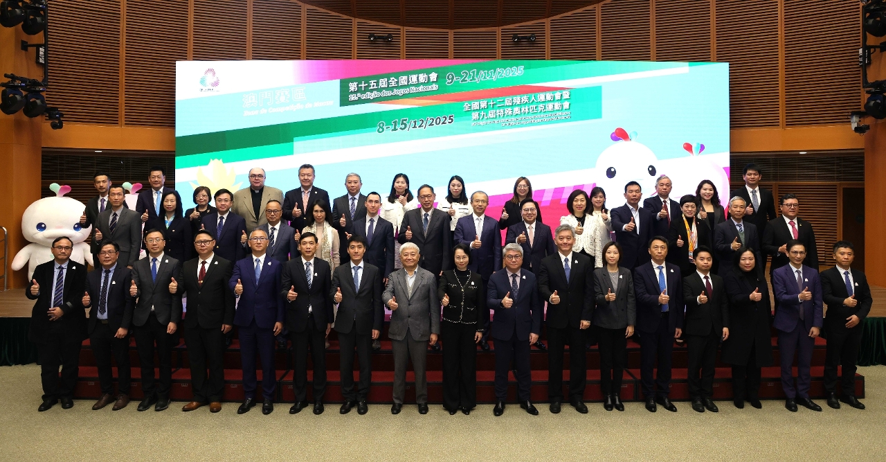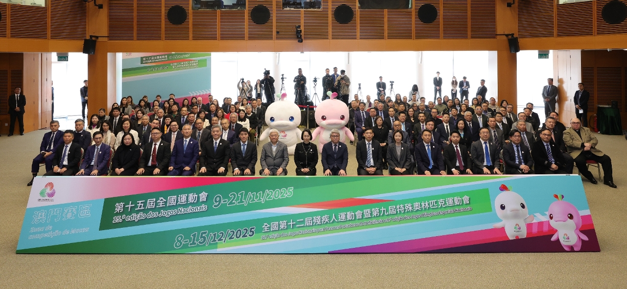 O Secretário-Geral da Comissão Organizadora da Zona de Competição de Macau da 15.ª edição dos Jogos Nacionais e Jogos Olímpicos Especiais para Deficientes e Coordenador do Gabinete Preparatório, Pun Weng Kun, apresentou as cerimónias de abertura da 15.ª edição dos Jogos Nacionais e dos Jogos Olímpicos Especiais para Deficientes, que terão lugar no dia 9 de Novembro e 8 de Dezembro em Guangdong e as cerimónias de encerramento terão lugar no dia 21 de Novembro e 15 de Dezembro em Shenzhen. Também apresentou o emblema, o slogan e mascote, assim como o ponto de situação da preparação da zona de competição de Macau, referindo as datas e instalações de competição, o programa de voluntários e também, de Abril a Junho, realizar-se-ão vários jogos agendados como competições de teste, coordenando o trabalho global a estar em melhores condições para a chegada da 15.ª edição dos Jogos Nacionais e Jogos Olímpicos Especiais para Deficientes.