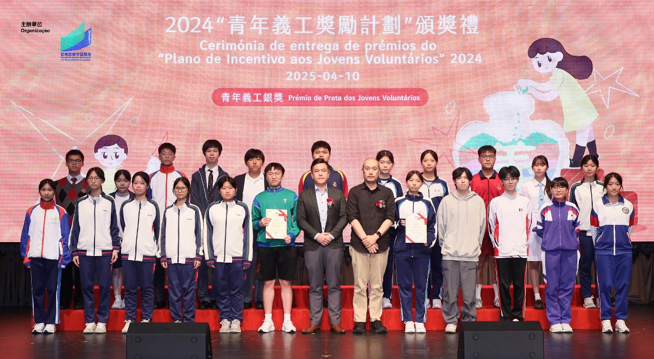 A fim de elogiar e reconhecer o contributo e o compromisso assumidos pelos jovens voluntários de Macau para com a sociedade ao longo do ano passado, a Direcção dos Serviços de Educação e de Desenvolvimento da Juventude (DSEDJ) organizou a cerimónia de entrega de prémios do “Plano de Incentivo aos Jovens Voluntários” de 2024, que teve lugar no dia 10 de Abril. Na cerimónia estiveram presentes mais de 450 pessoas, incluindo os Subdirectores da DSEDJ, Teng Sio Hong e Wong Ka Ki, vogais do Conselho de Juventude, representantes de serviços públicos e instituições públicas participantes nos planos da DSEDJ para jovens voluntários, representantes de associações sociais, representantes de escolas e um grupo de jovens voluntários.
